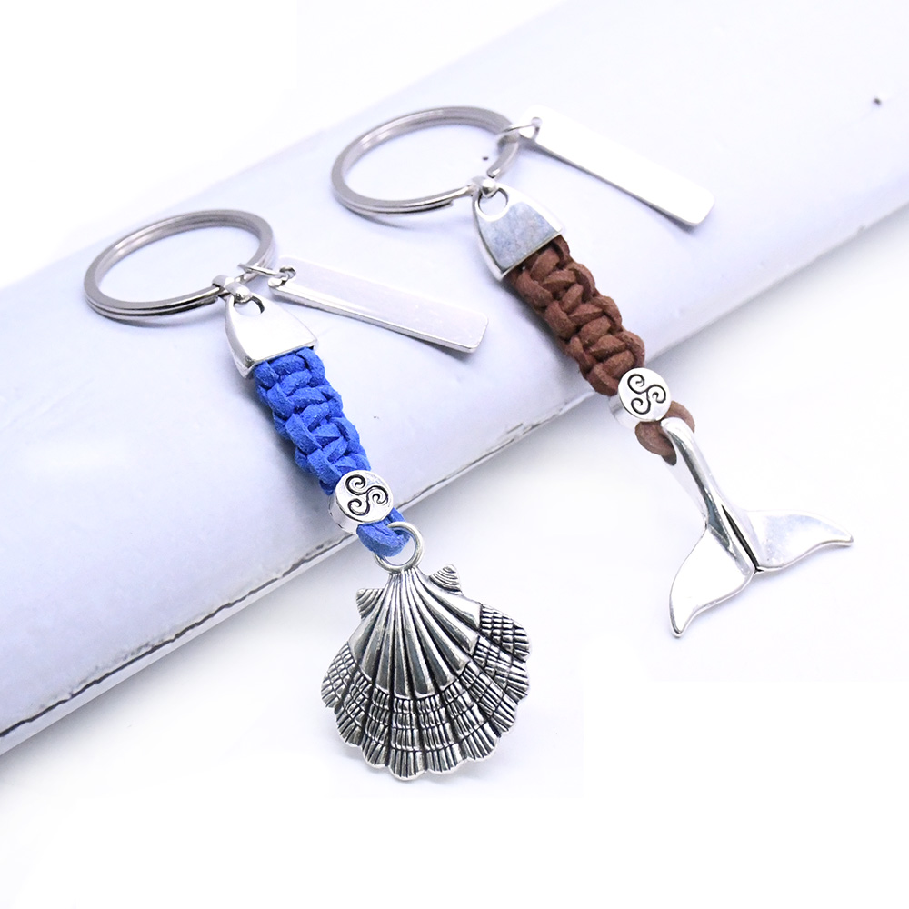 手工編制魚形貝殼十字架絨繩鎖匙扣掛件圈環(huán)飾品旅游圣物禮品贈品