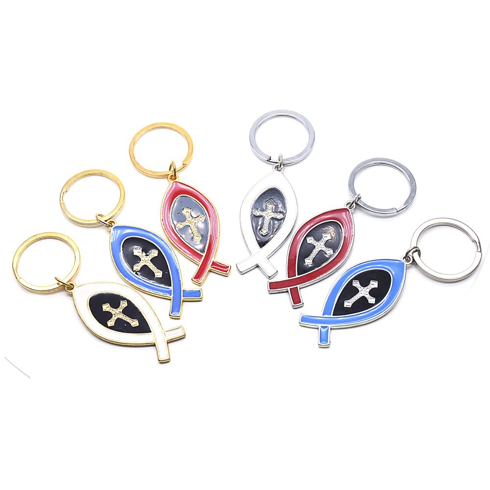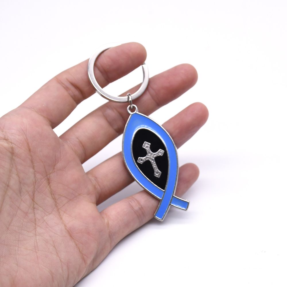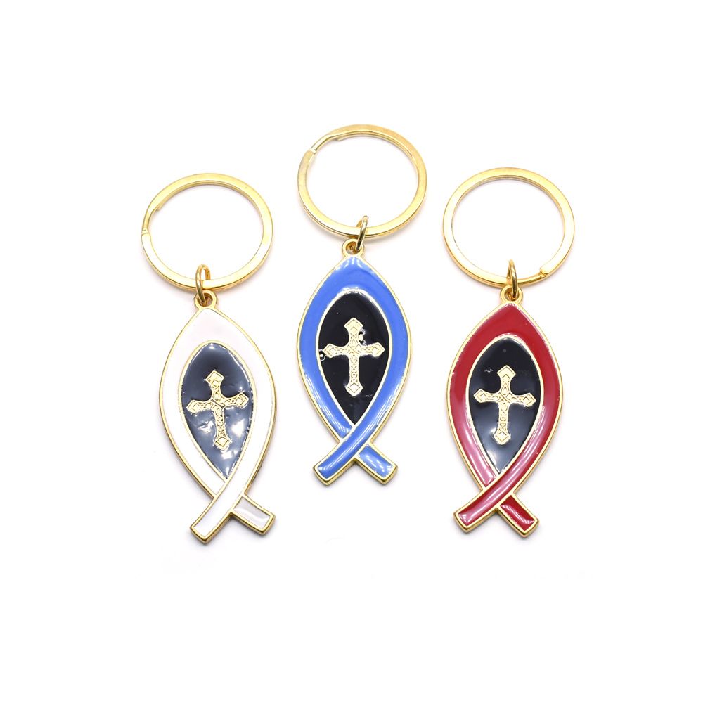 以色列JERUSALEM魚(yú)形十字架鑰匙扣掛件圈環(huán)飾品(單面)