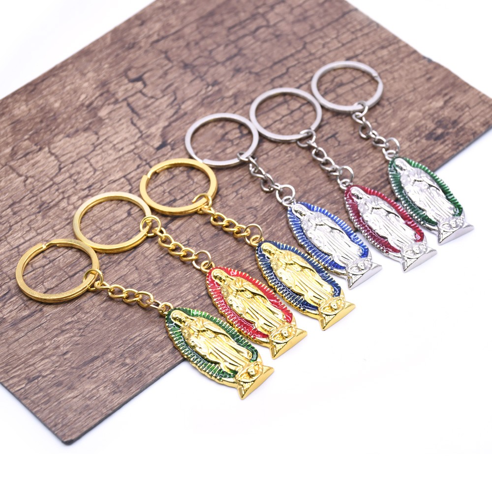 跨境專(zhuān)供彩色滴油瓜德盧佩圣母鑰匙扣掛件圈環(huán)飾品禮品