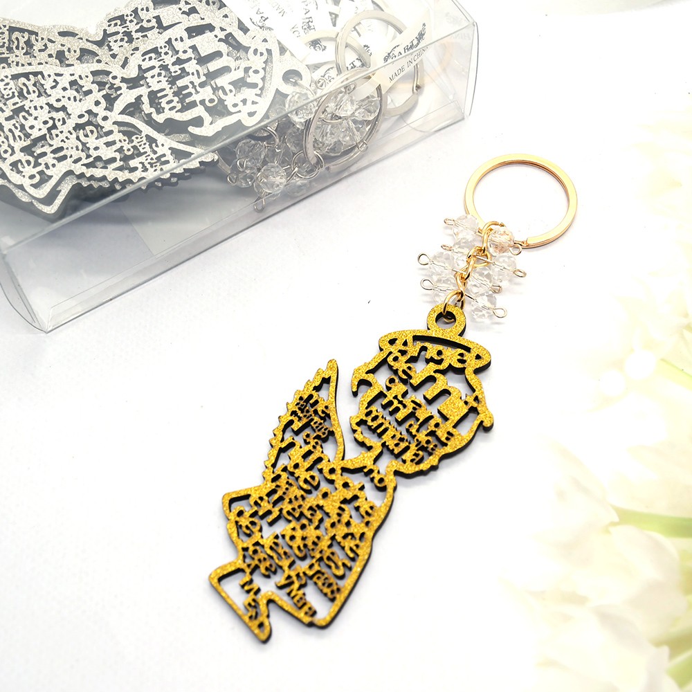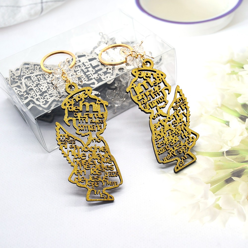 外貿(mào)洗禮鑰匙扣木牌鑰匙鏈Guadalupe金銀粉婚禮飾品掛件