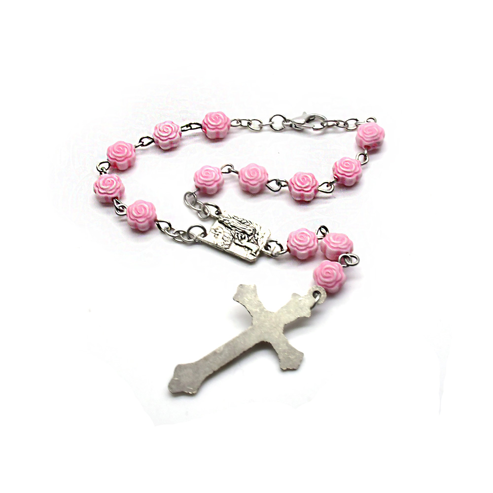 外貿(mào)跨境電商玫瑰十字架粉色念珠手鏈車掛