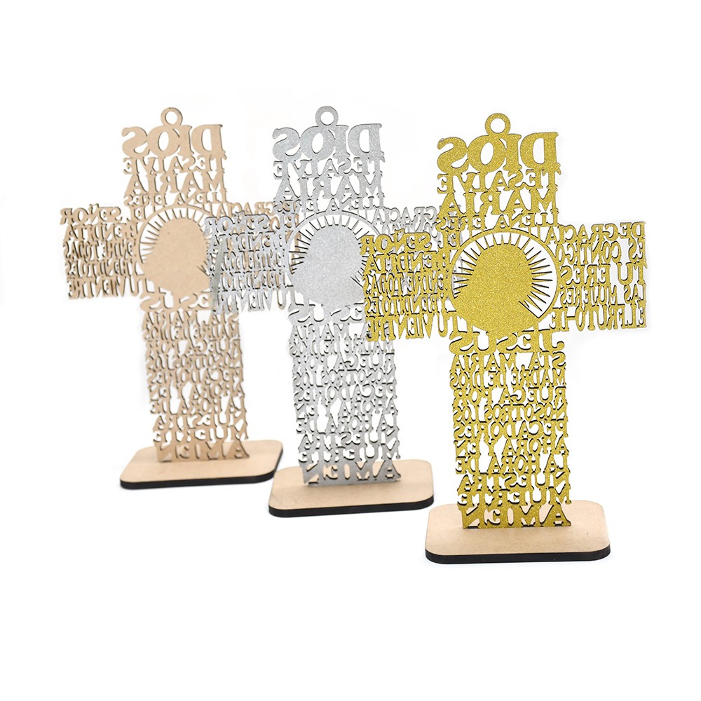 激光木制十字架擺件金銀粉婚禮飾品擺臺外貿(mào)電商新款