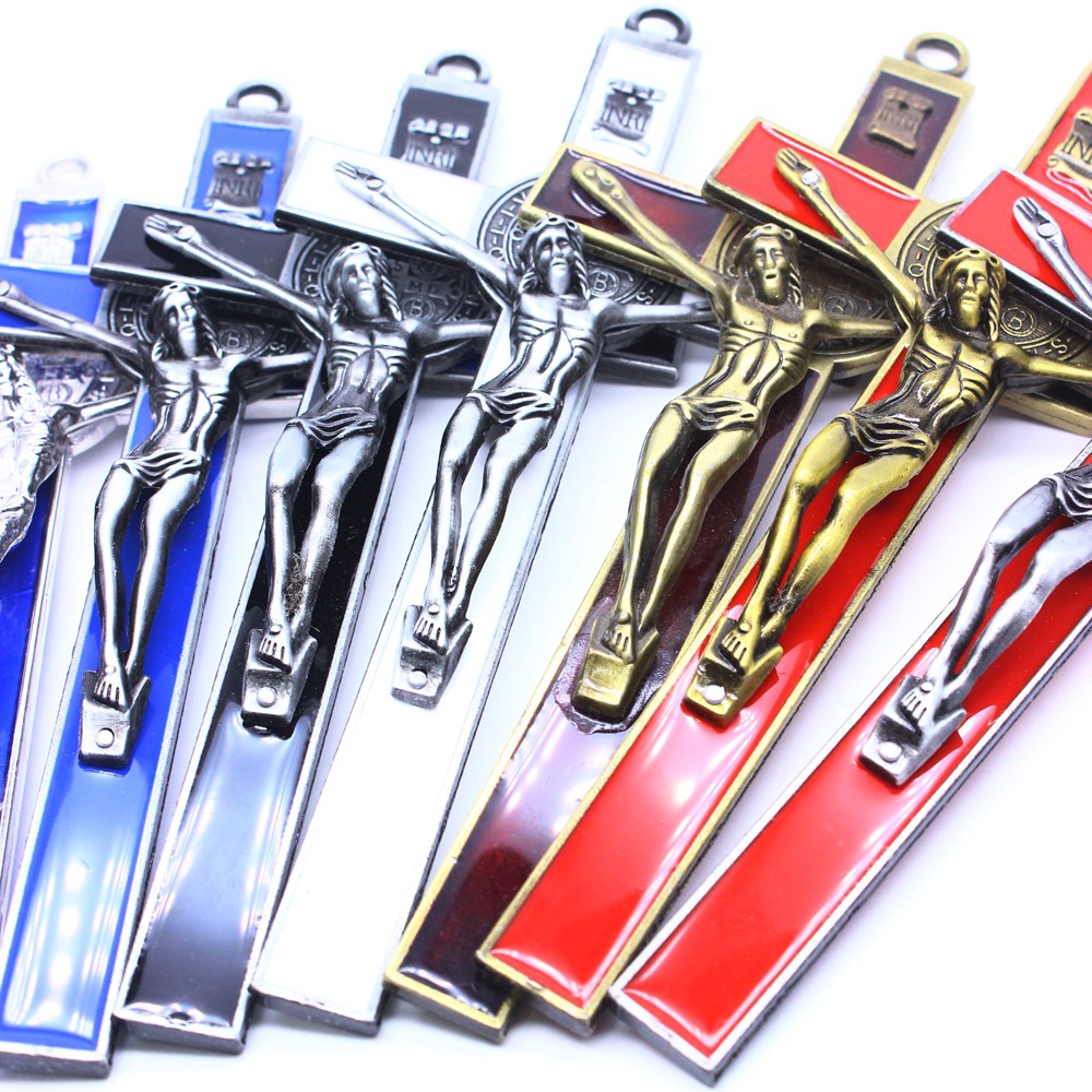 (古青銅+紅)9.2*19cm金屬十字架掛件辦公室家用擺件飾品