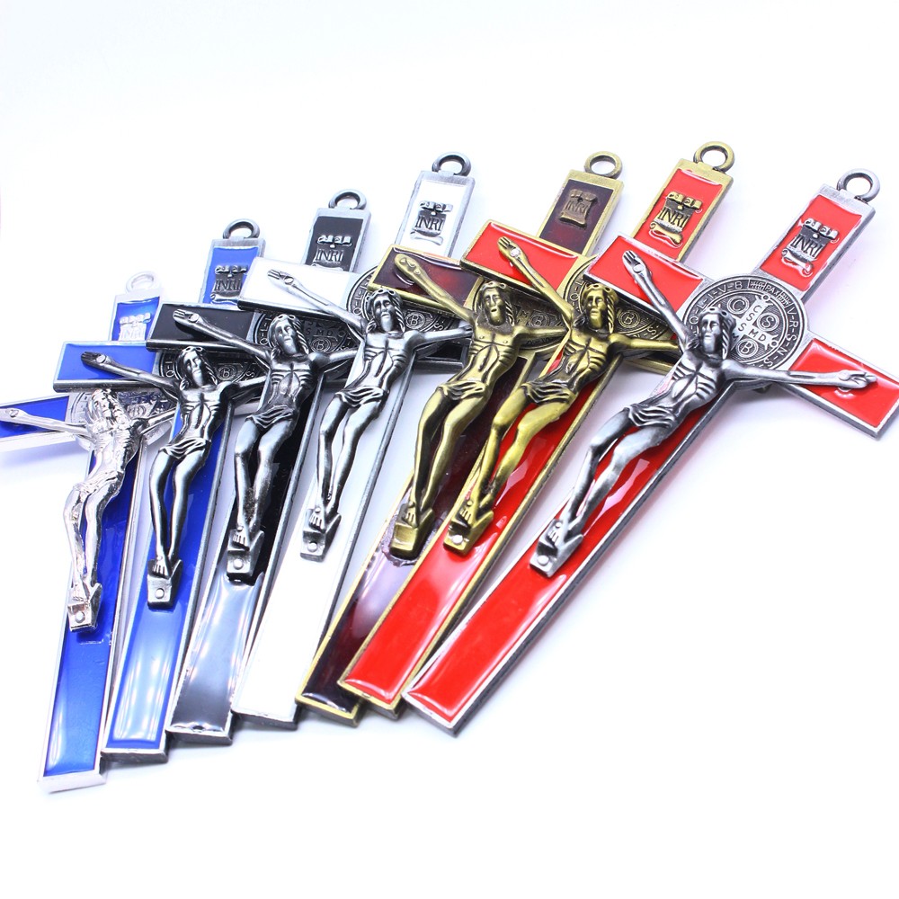 (古錫+紅)跨境WISH亞馬遜19*9.2cm十字架掛件辦公室家用擺件飾品