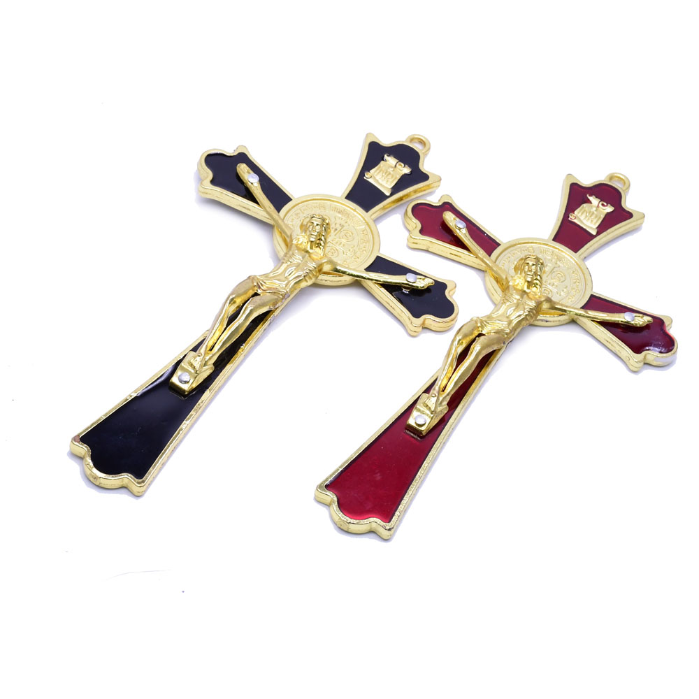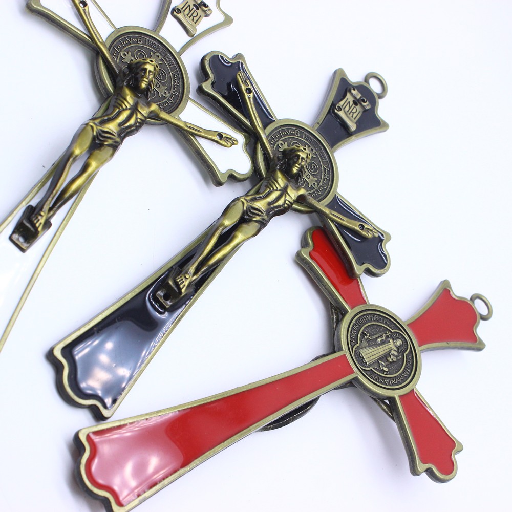 (古青銅+紅)9.2*19cm金屬十字架掛件辦公室家用擺件飾品