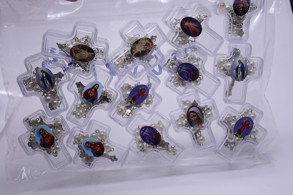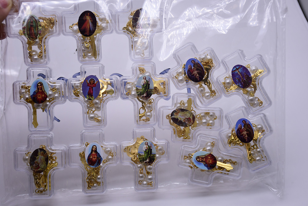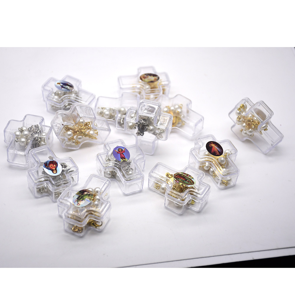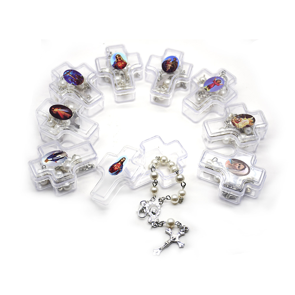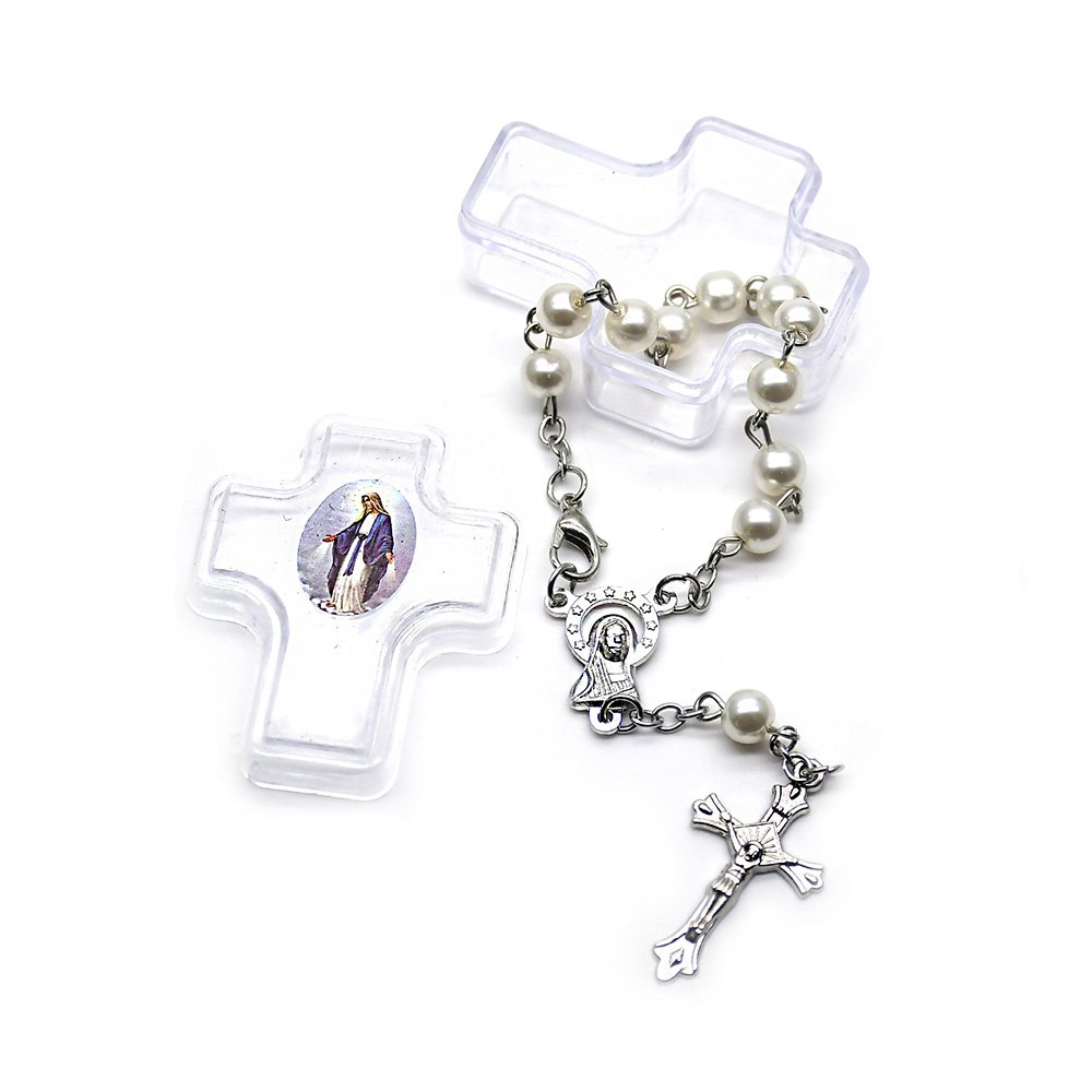 圣父圣母吊墜珍珠彈力繩手鏈 (隨機款)