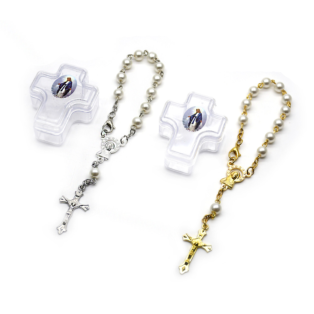 (白K)6mm珍珠十字盒裝念珠手鏈金銀手鏈(貼圖隨機(jī))