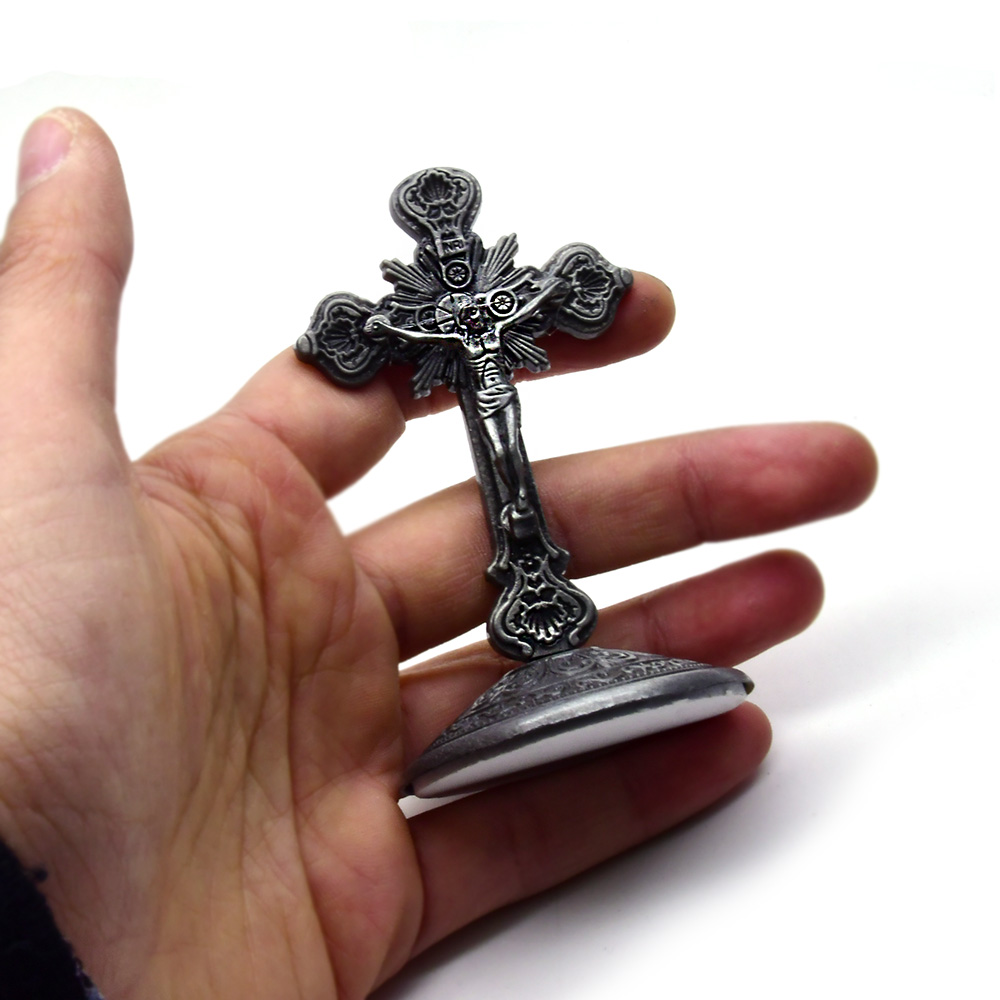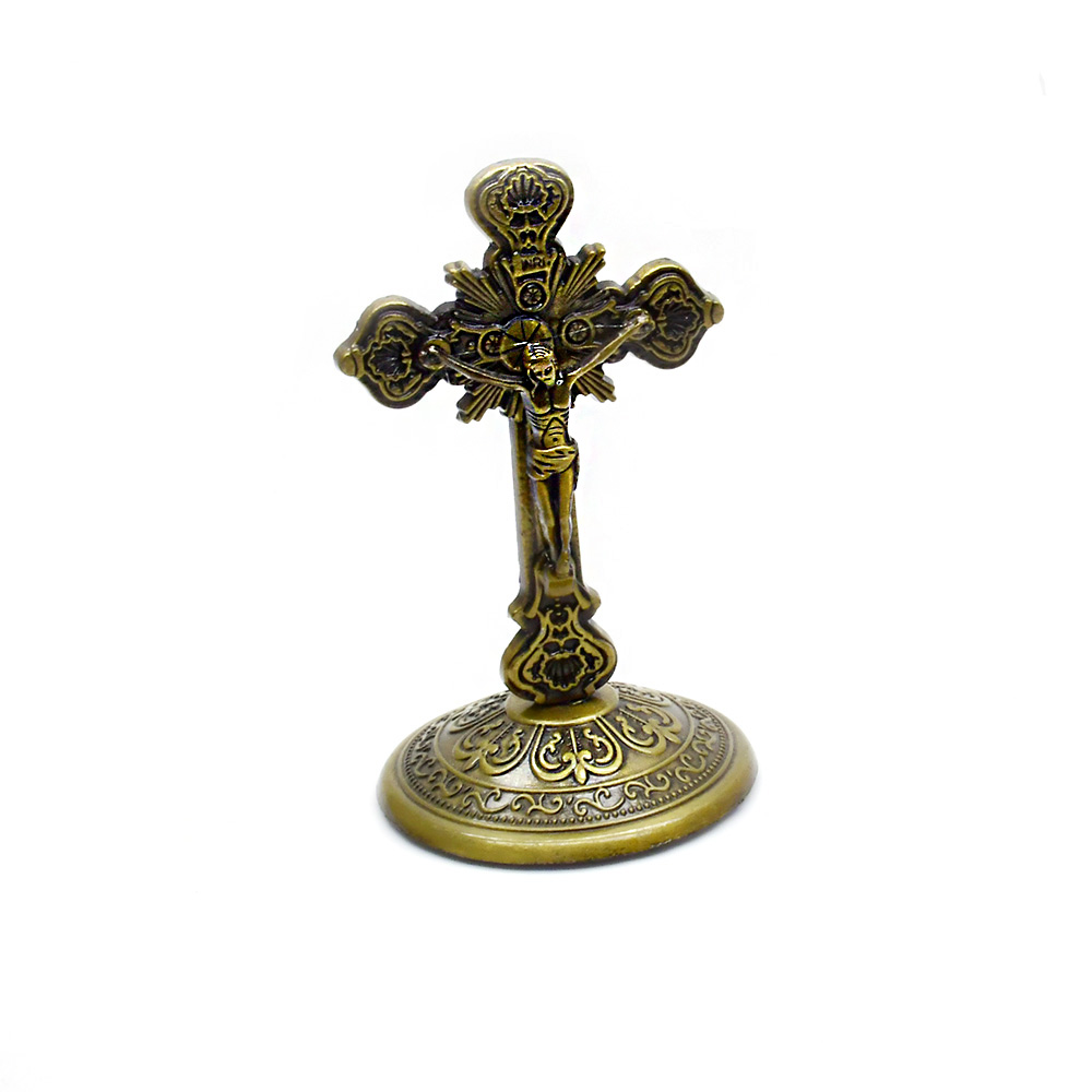 (金黃色)15.5cm高金色十字架帶鉆金屬擺件擺臺(tái)歐式圣像旅行汽車家居裝飾