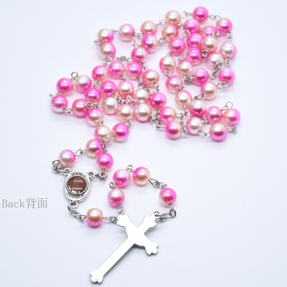 念珠飾品批發(fā) 十字架項(xiàng)鏈塑料玫瑰珠項(xiàng)鏈