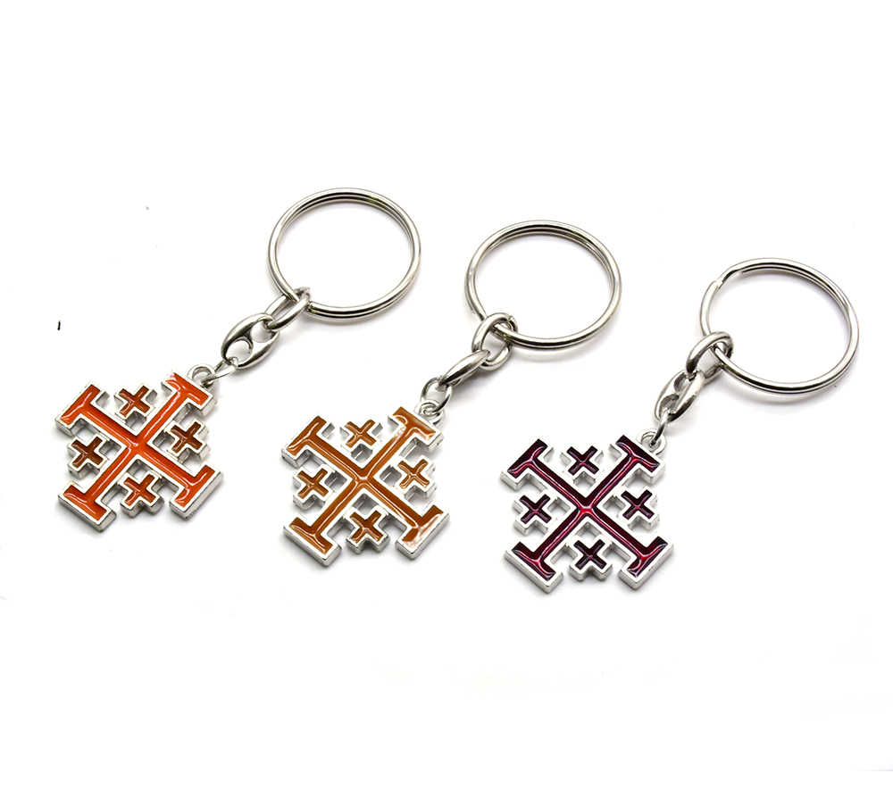 (橙色)十字架JERUSALEM 鑰匙扣掛件掛飾