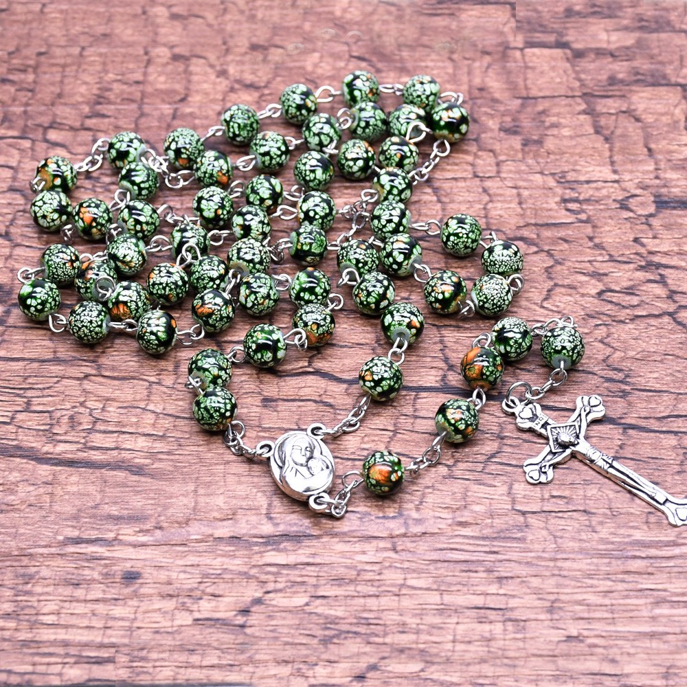 (綠色)Rosary念珠飾品項(xiàng)鏈仿陶瓷珠十字架項(xiàng)鏈祈禱珠