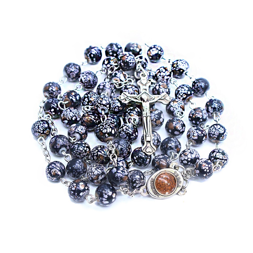 (咖色)Rosary念珠飾品項(xiàng)鏈仿陶瓷珠十字架項(xiàng)鏈