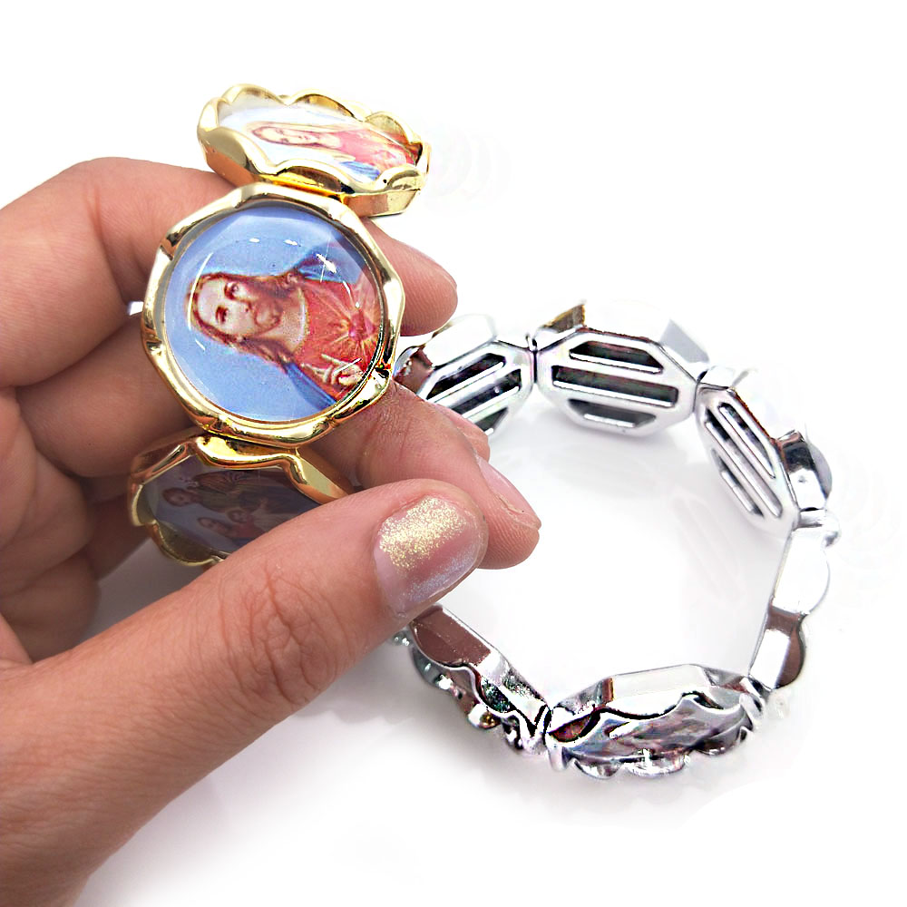 金屬手環(huán)飾品手鏈金色合金串珠貼圖人像手飾彈力手環(huán) 17g