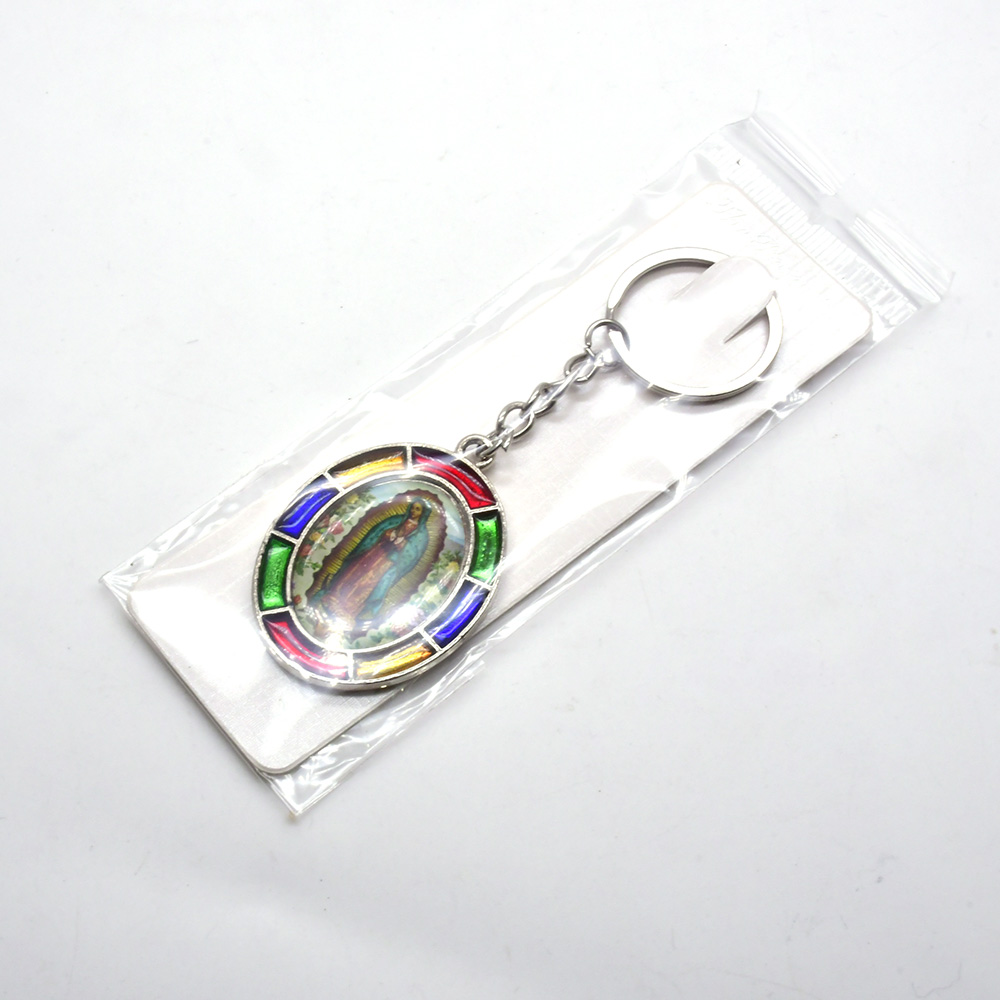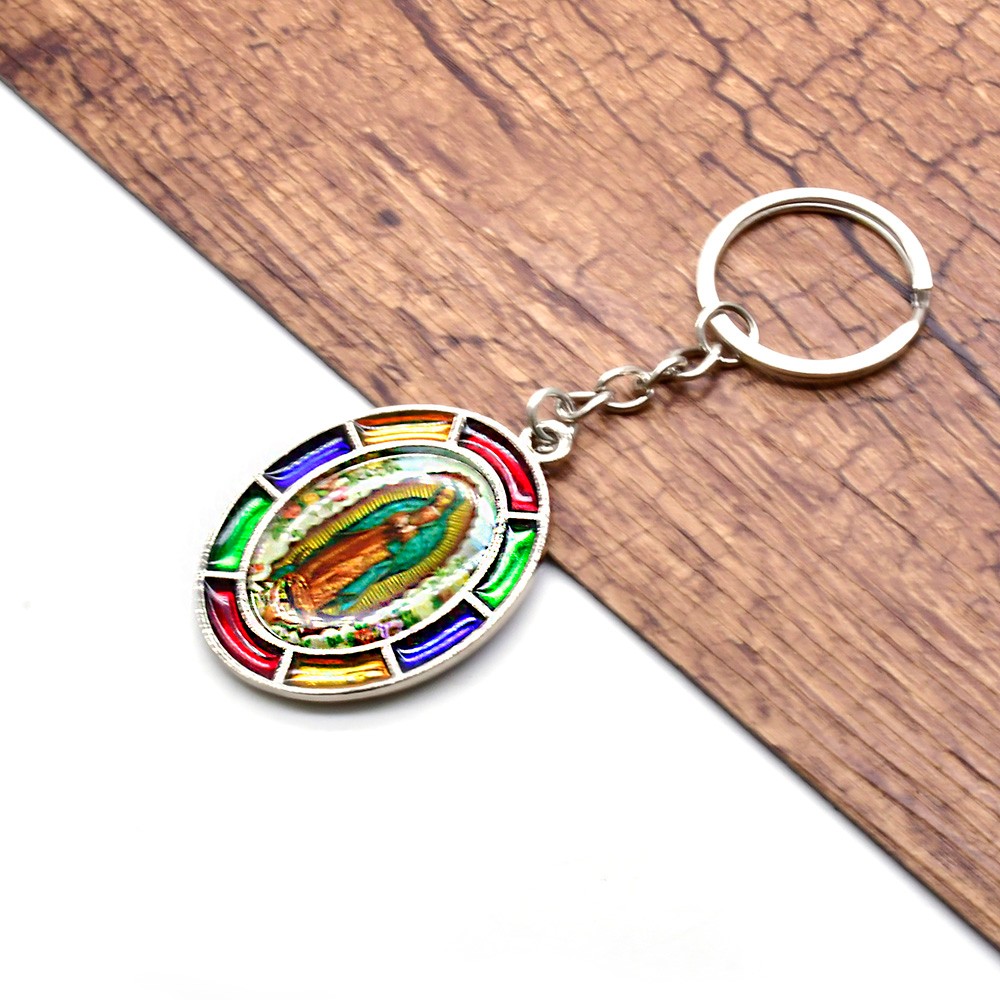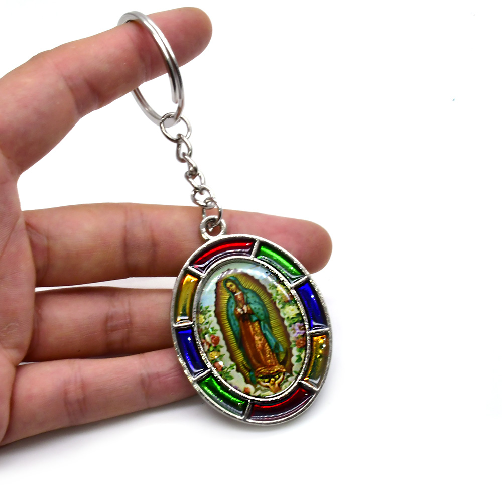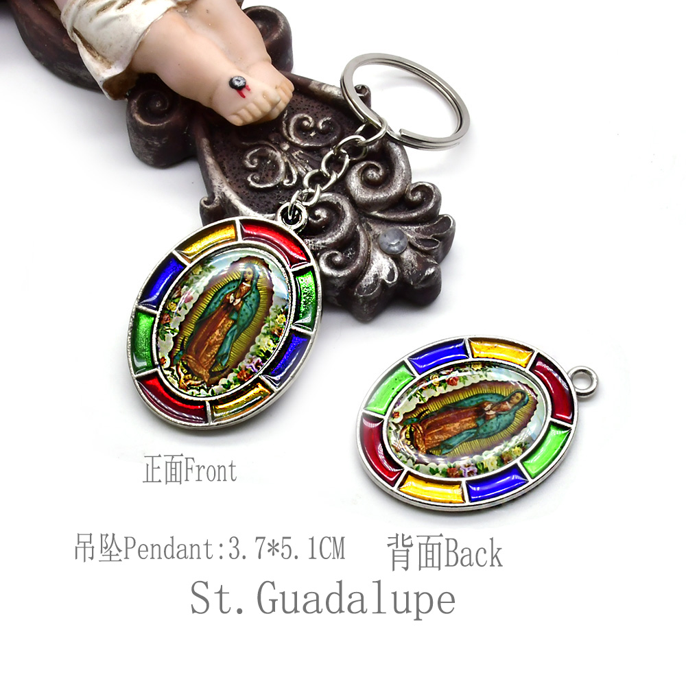 跨境專(zhuān)供彩色滴油瓜德盧佩圣母鑰匙扣掛件圈環(huán)飾品禮品