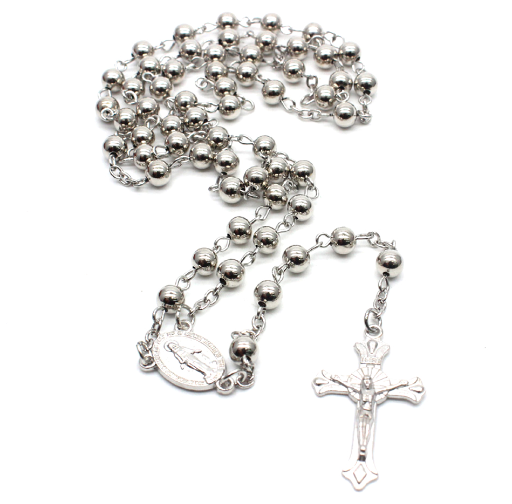 (白K銀)6mm銅珠念珠十字架項(xiàng)鏈祈禱珠十字架