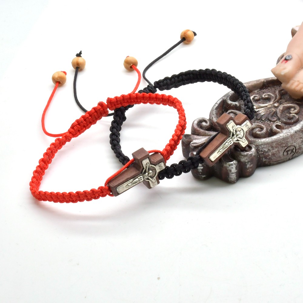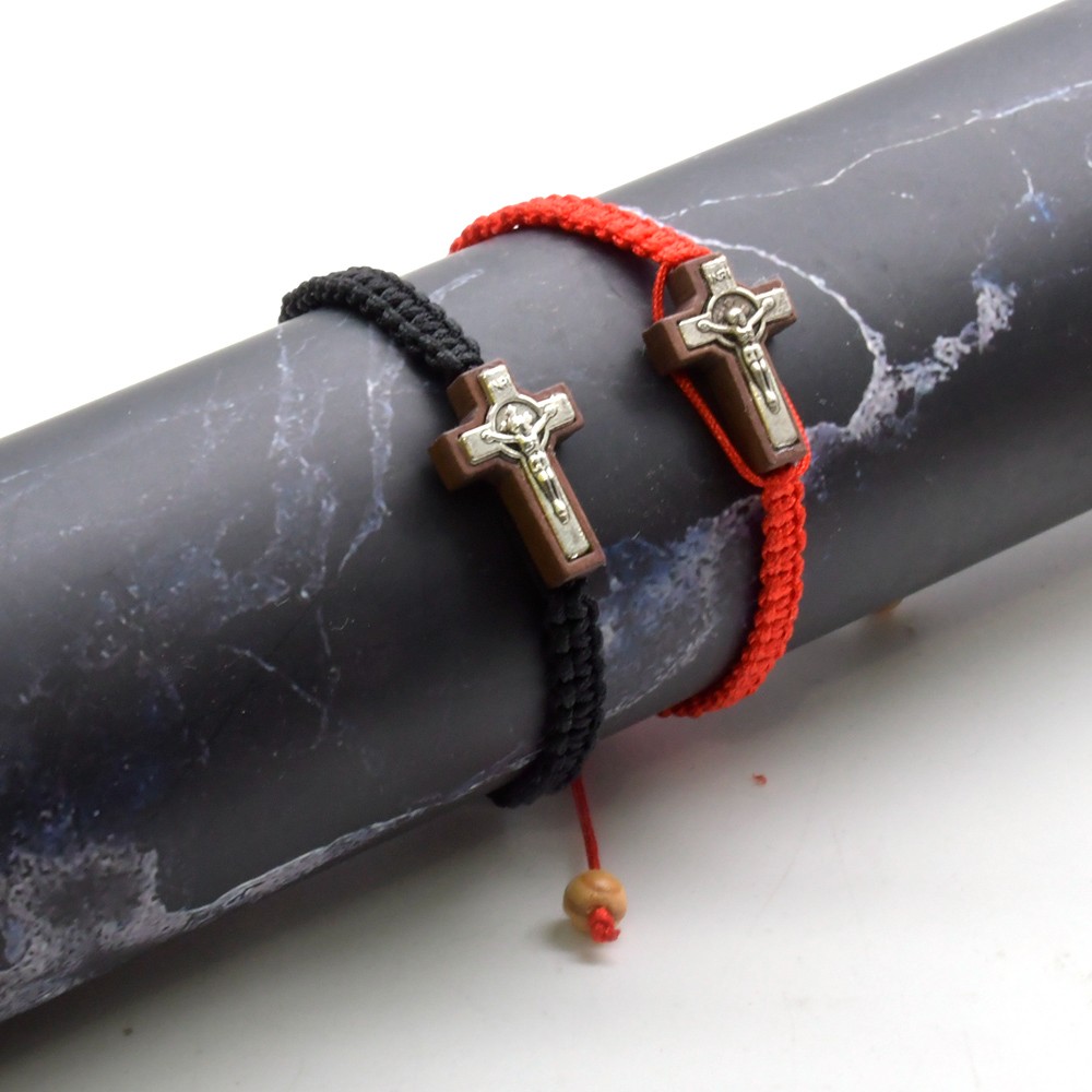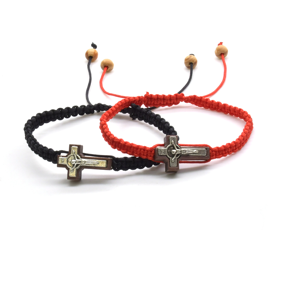 (紅色) 合金繩編織中國結(jié)念珠手鏈 可調(diào)節(jié)十字架手繩