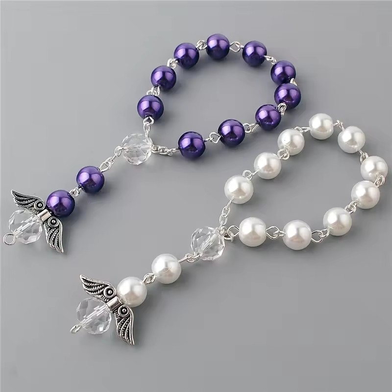 (紫)天使翅膀8MM珍珠念珠手鏈周歲禮洗禮珠