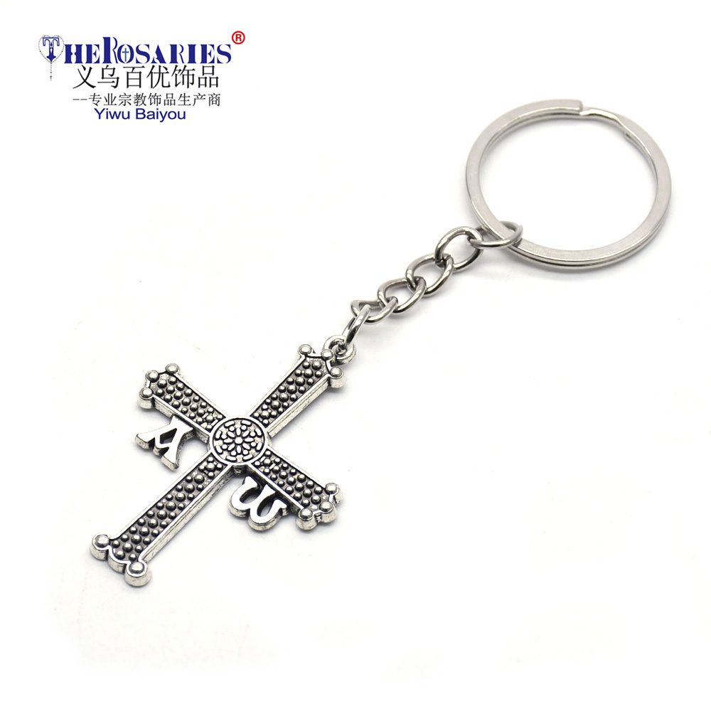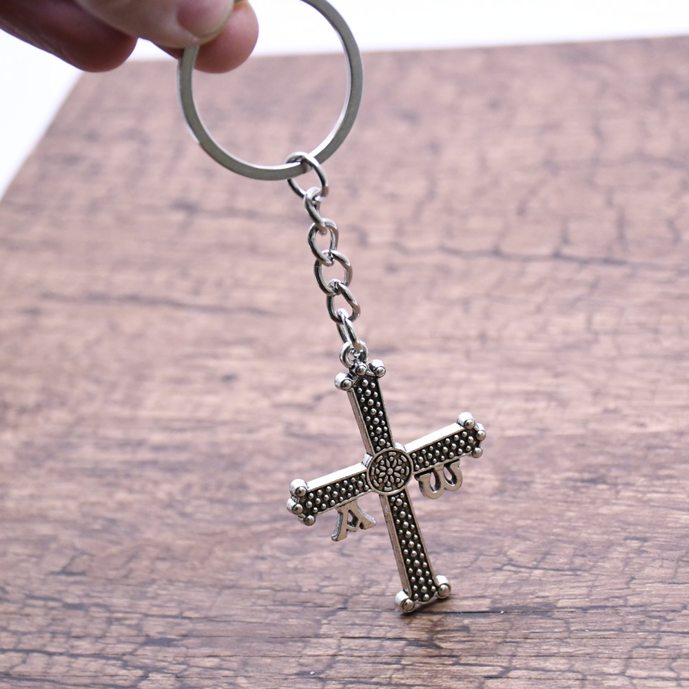 古銀十字架鑰匙扣掛件圈環(huán)飾品宗教朝拜圣地禮品贈(zèng)品