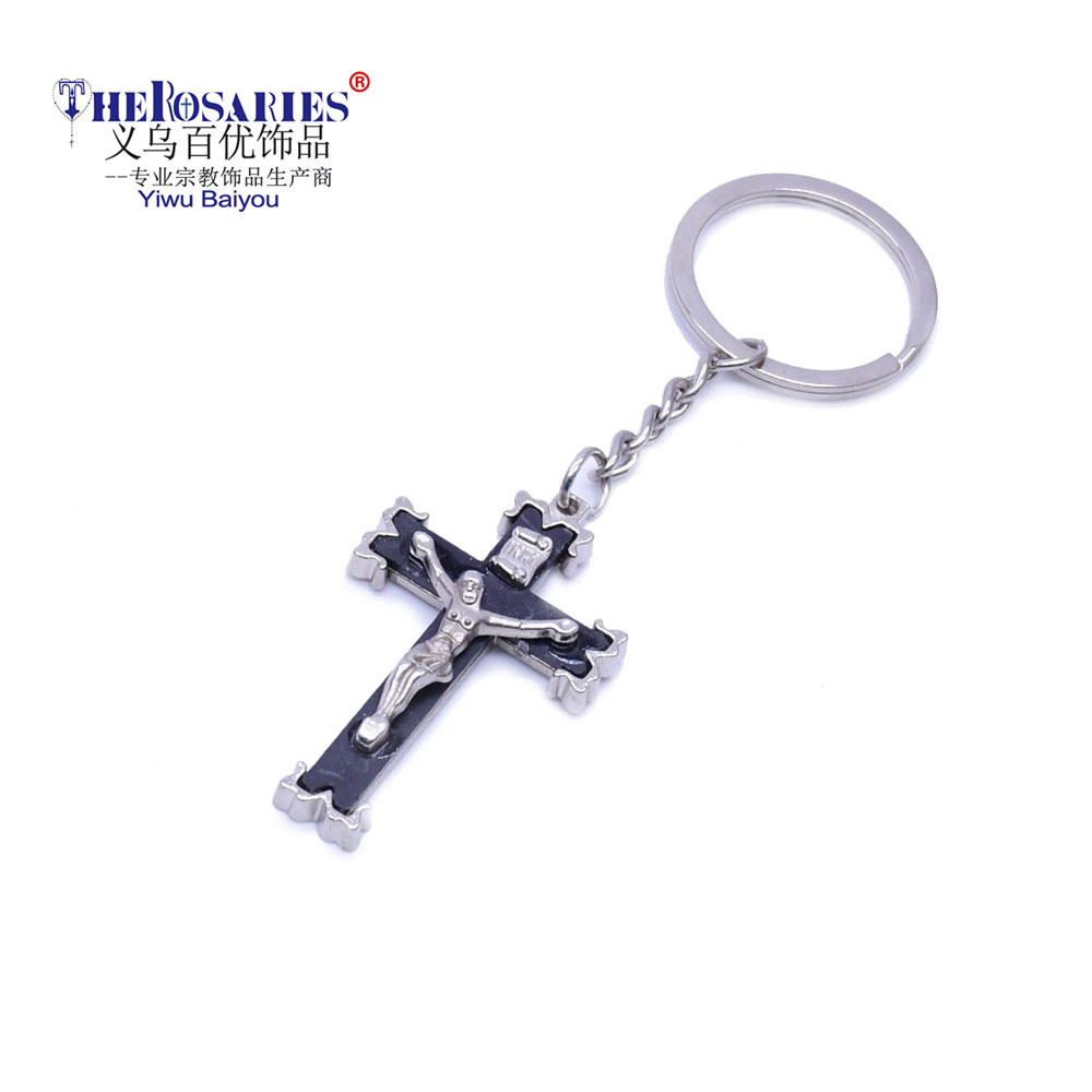 黑色十字架鑰匙扣掛件宗教飾品旅游紀念品禮品贈品