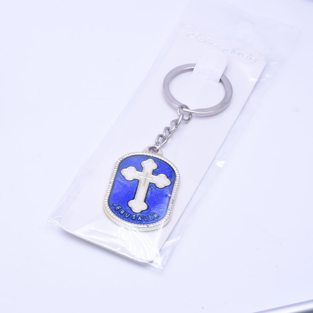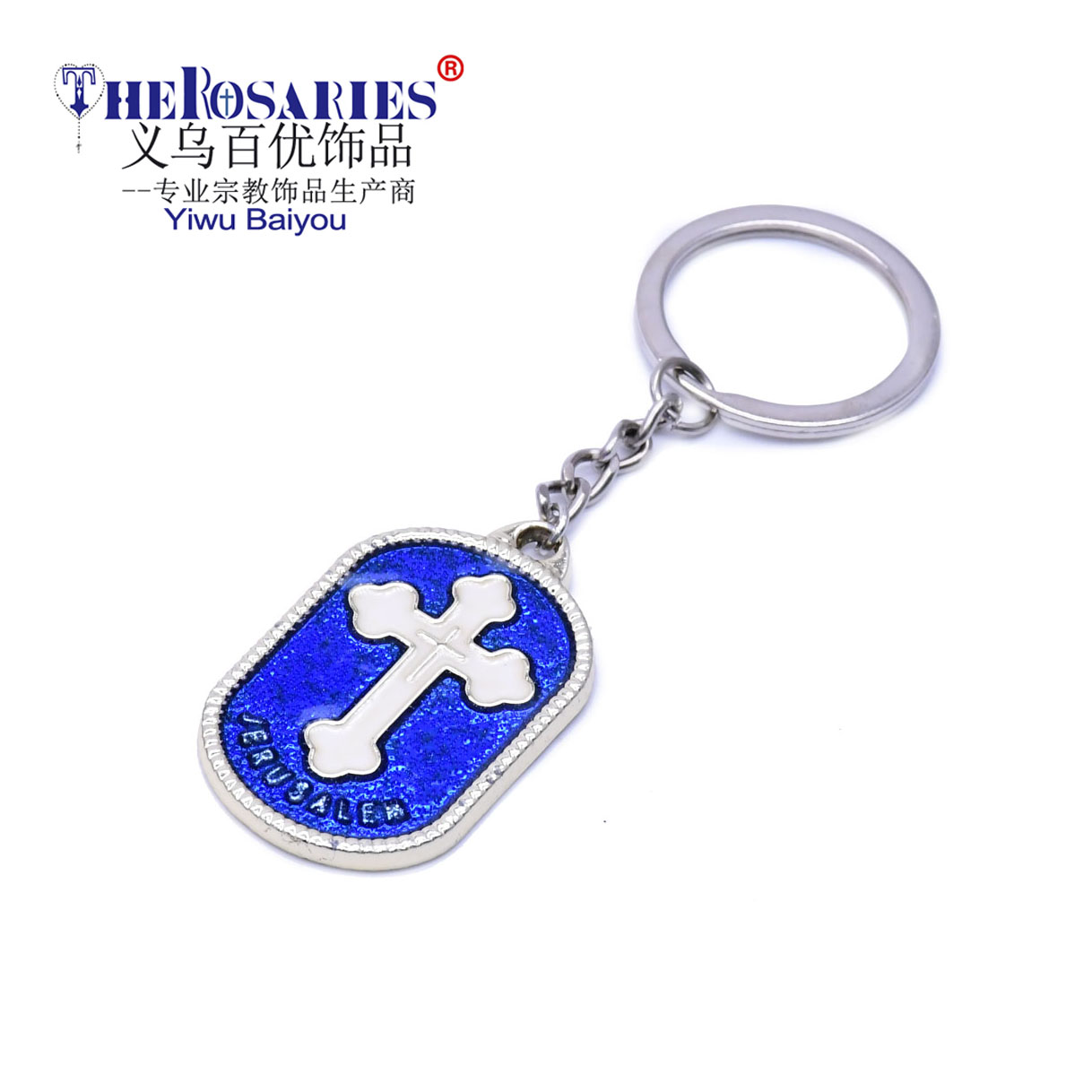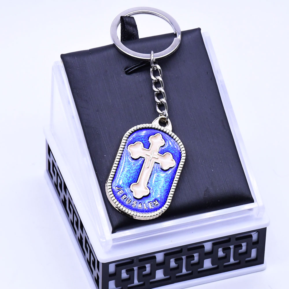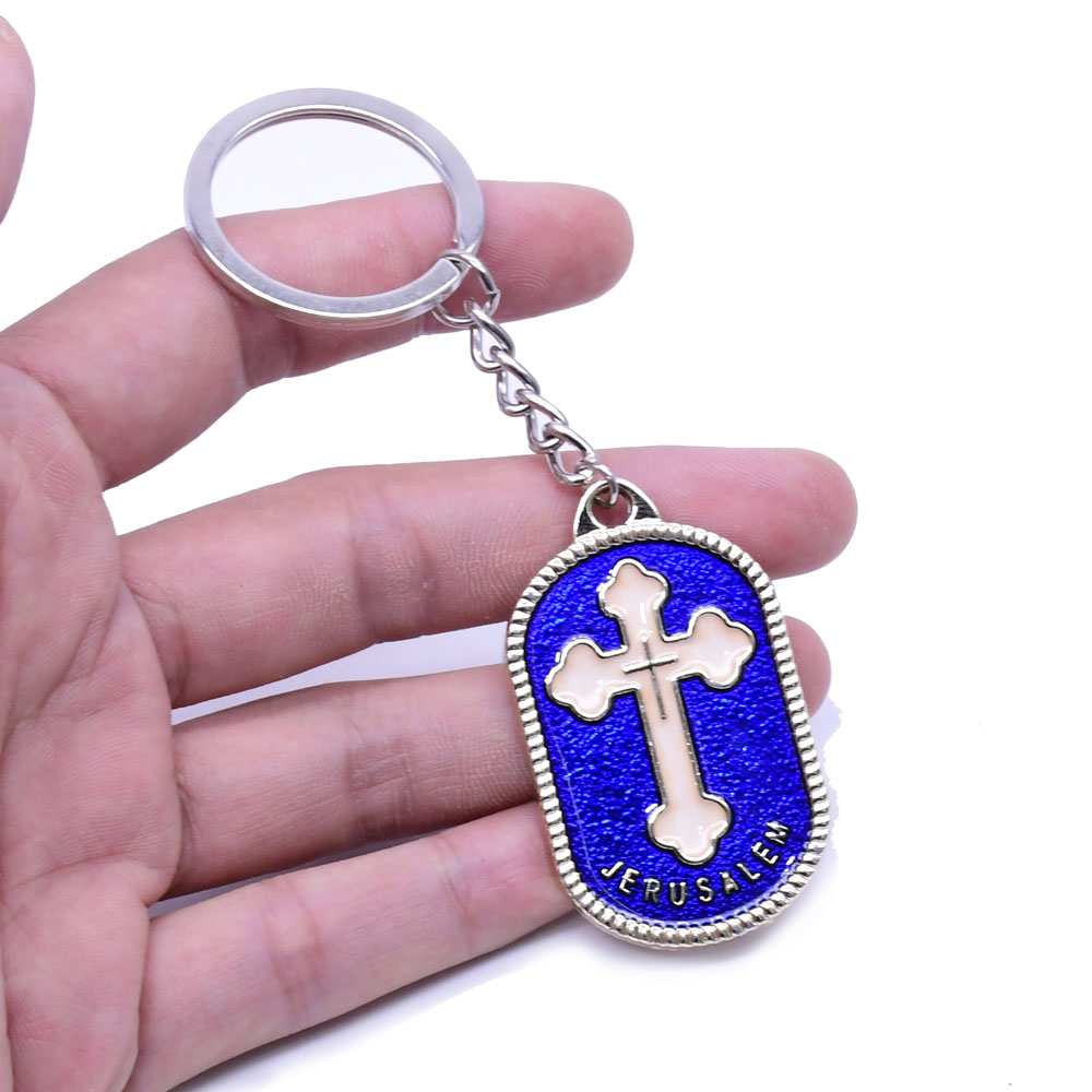 寶藍(lán)JERUSALEM滴油十字架吊墜鑰匙扣掛件圈環(huán)飾品旅游紀(jì)念品