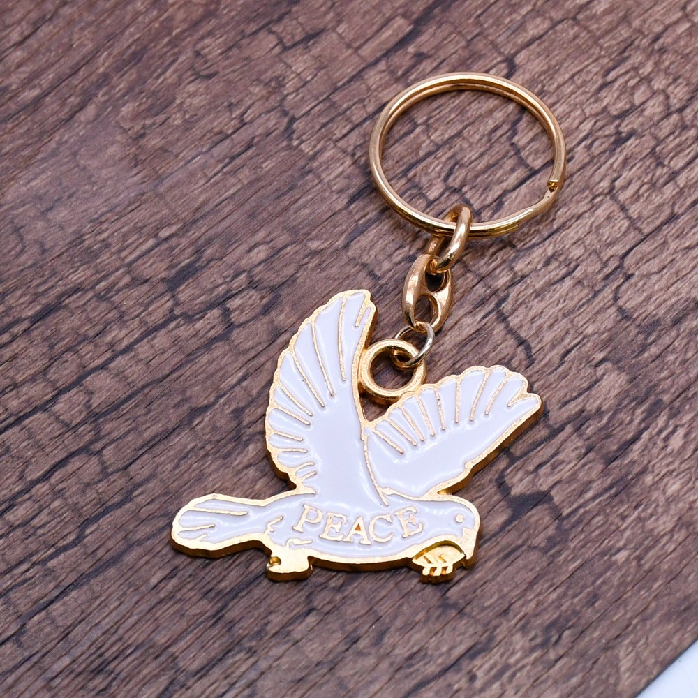 世界和平Peace白色和平鴿鎖匙扣掛件圈環(huán)飾品禮品贈(zèng)品