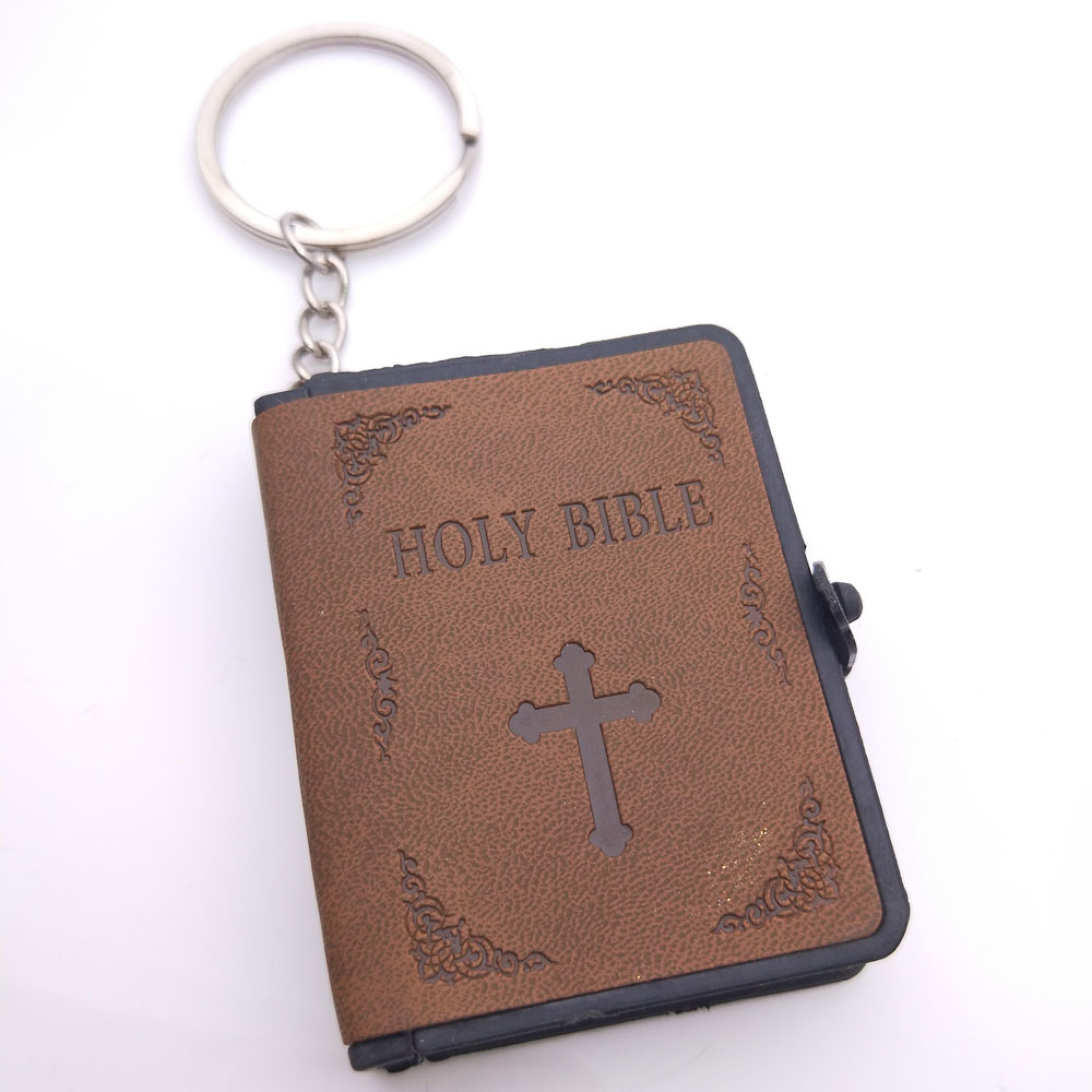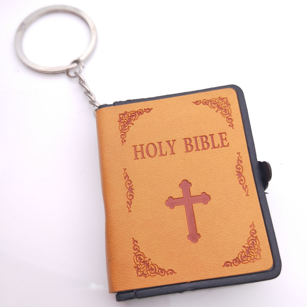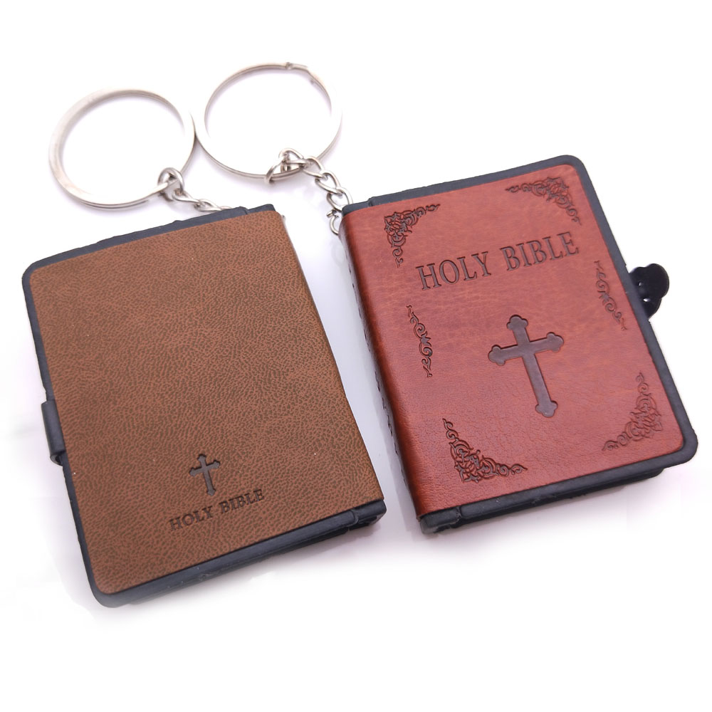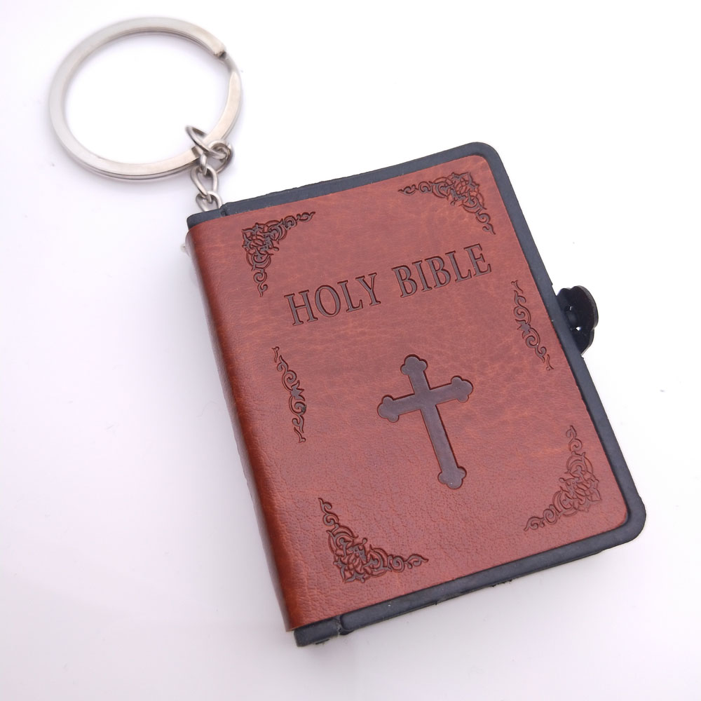 混色英文圣經(jīng)PU套皮內(nèi)書玫瑰經(jīng)節(jié)選禮品贈品鑰匙扣掛件