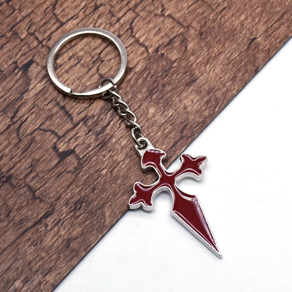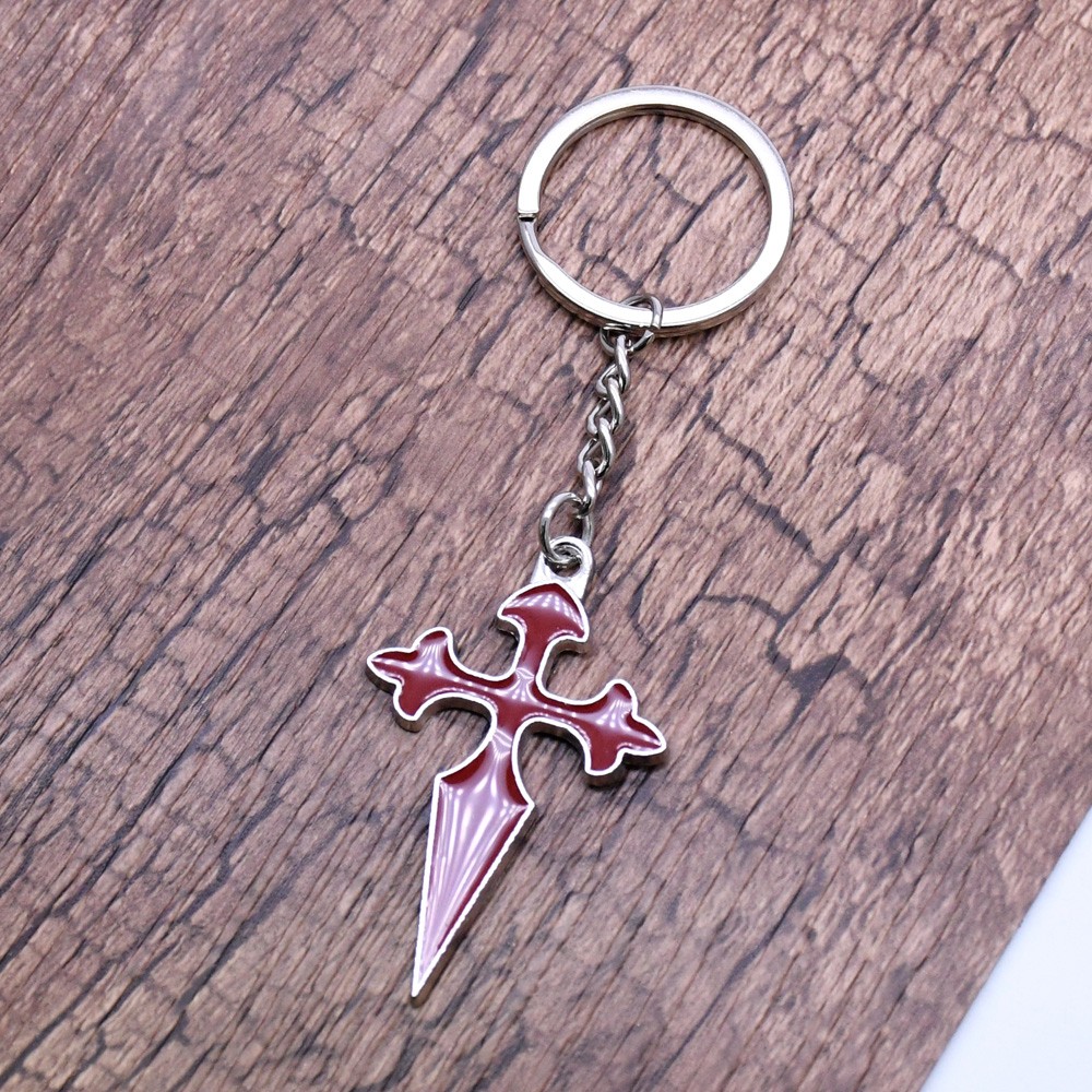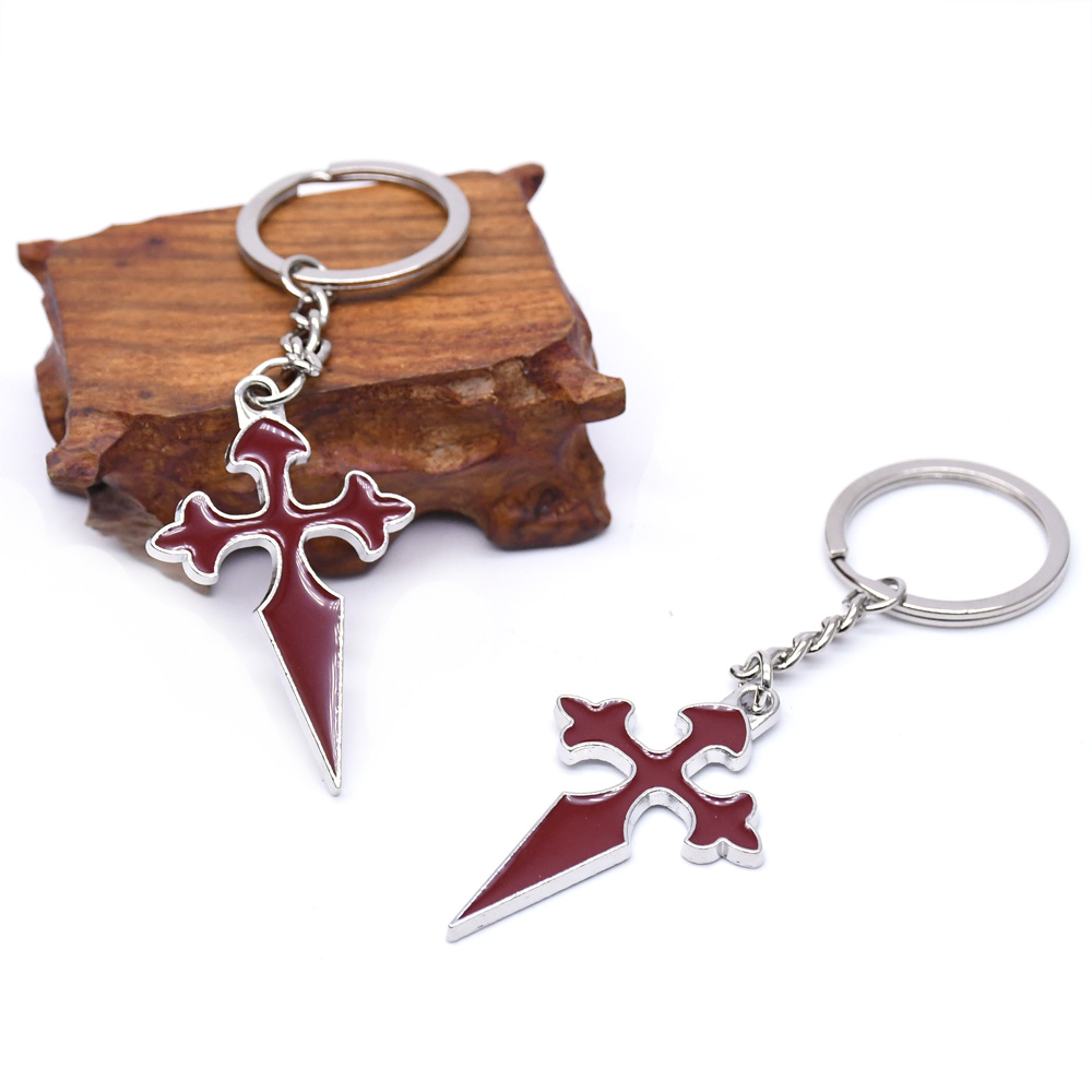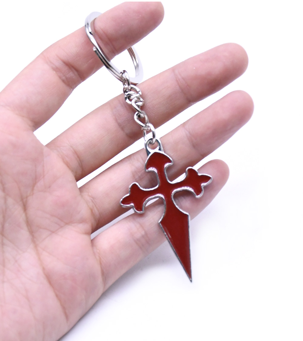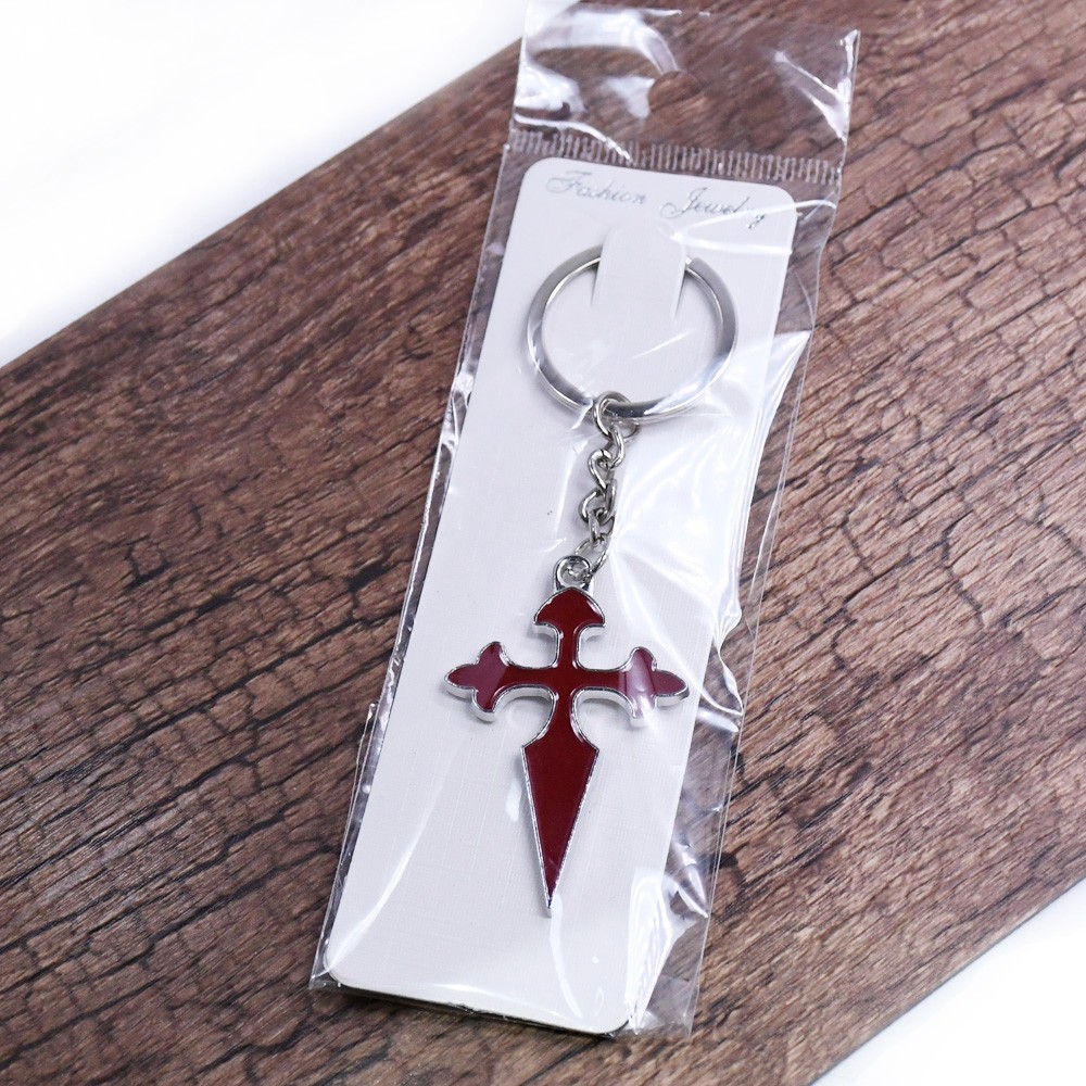 紅色十字架鎖匙扣掛件圈環(huán)飾品wish電商貨源