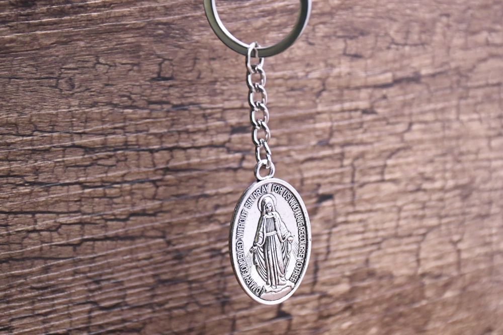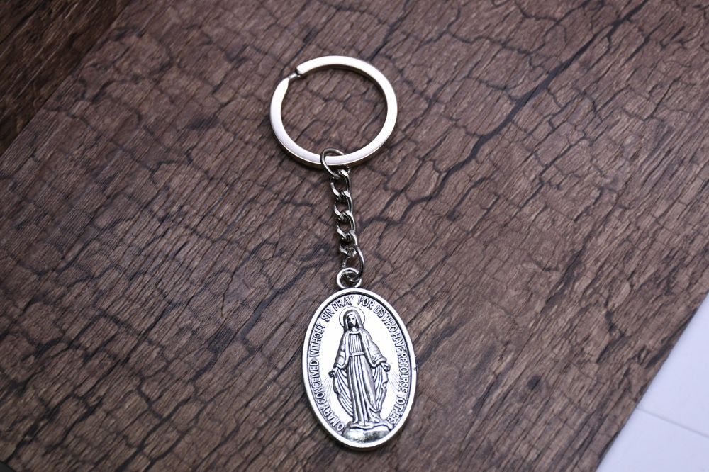 外貿(mào)洗禮鑰匙扣木牌鑰匙鏈Guadalupe金銀粉婚禮飾品掛件