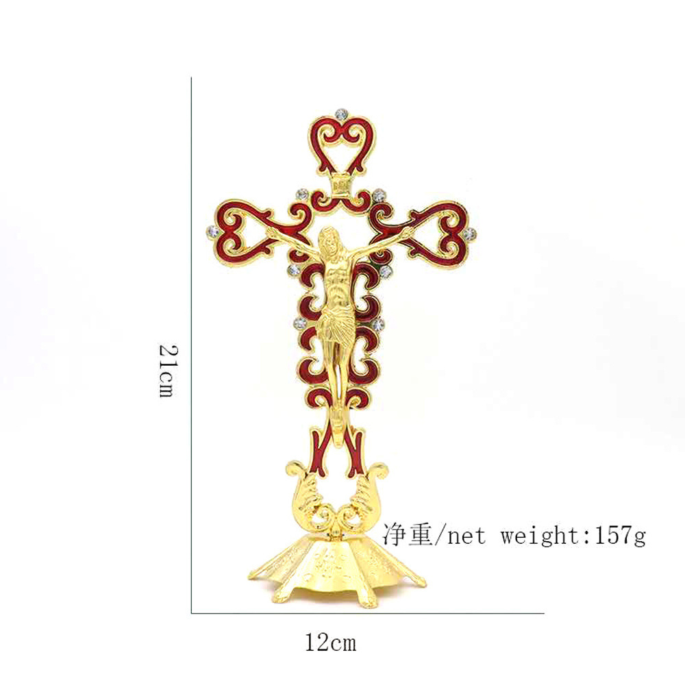 (金+紅)4.2*8cm 滴油十字架擺件辦公室家用飾品