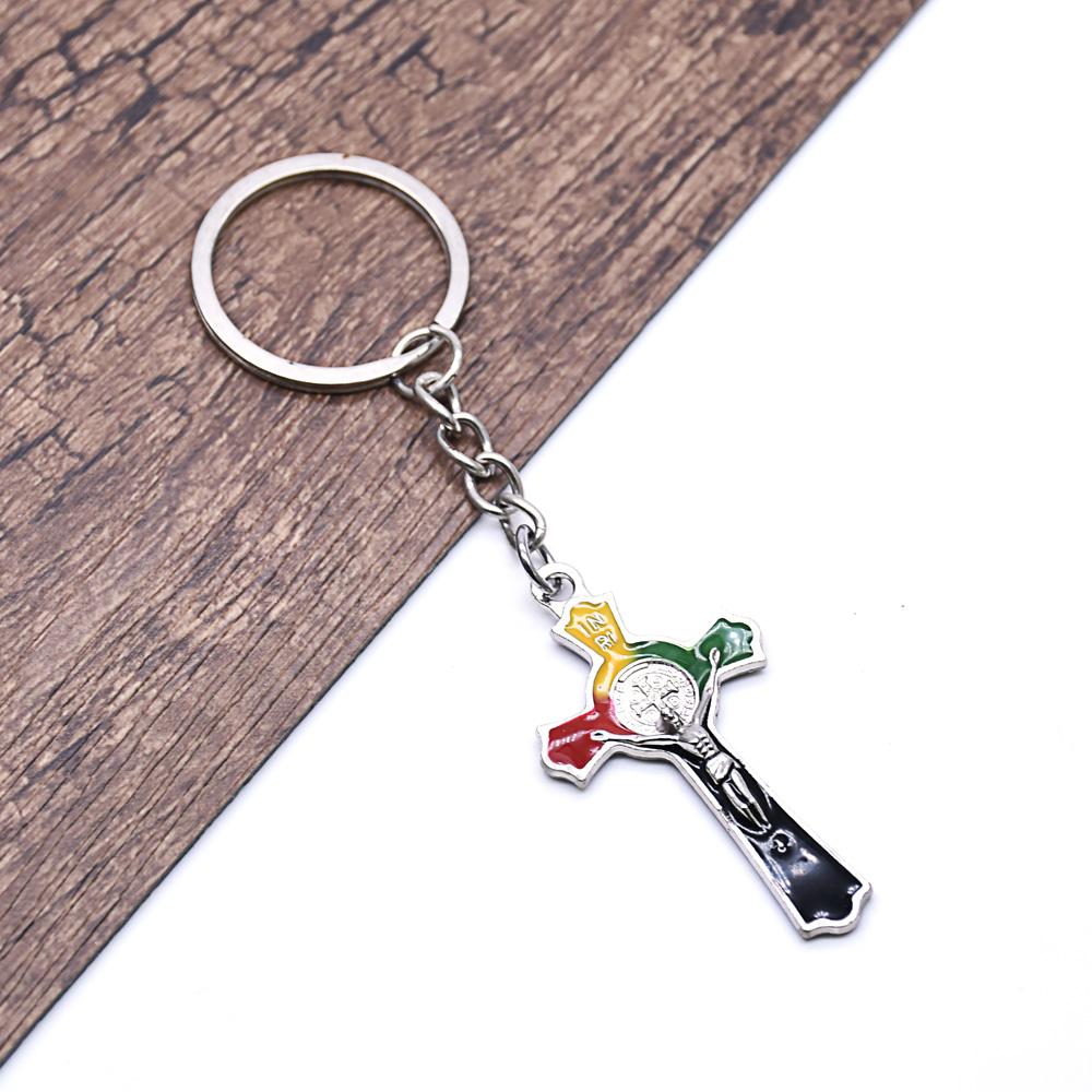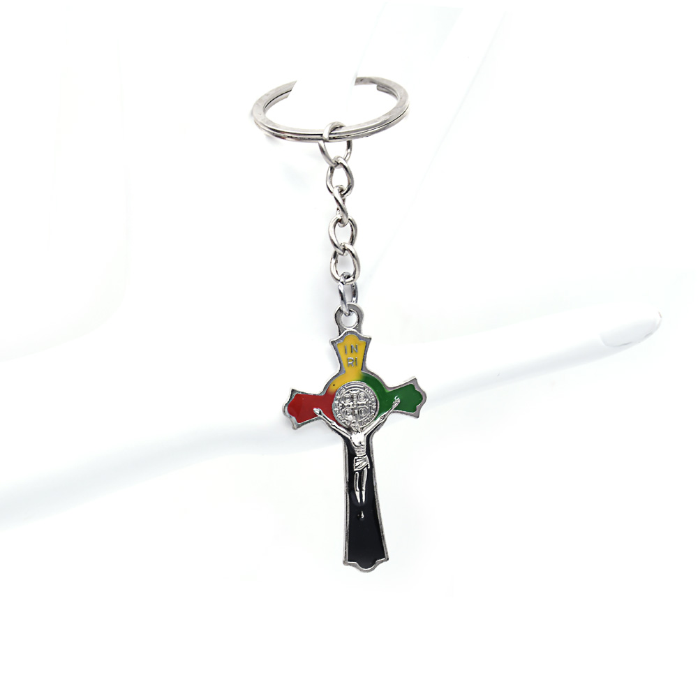 歐美貨源木制十字架圣本篤鑰匙扣掛件圈環(huán)飾品朝拜圣地禮品