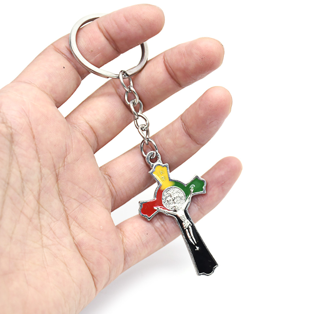彩色滴油和平鴿十字架鑰匙扣包包掛件圈環(huán)外貿飾品禮品贈品跨境歐