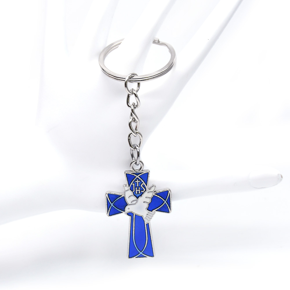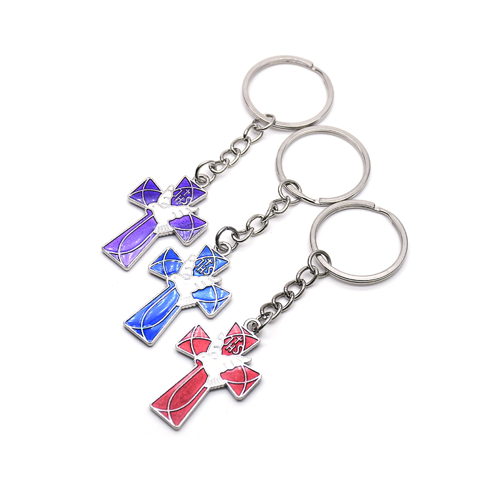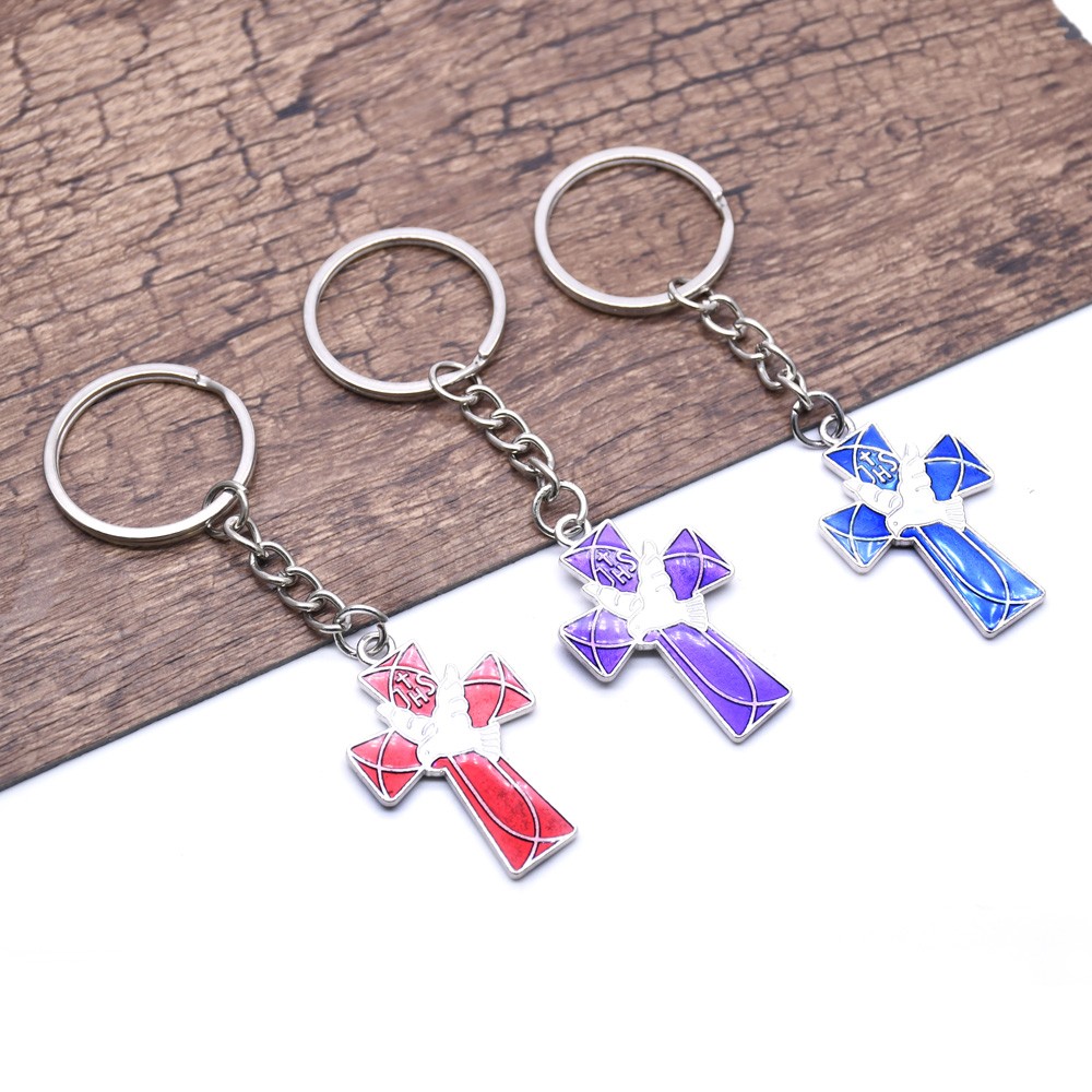 彩色滴油和平鴿十字架鑰匙扣包包掛件圈環(huán)外貿(mào)飾品禮品贈品跨境歐
