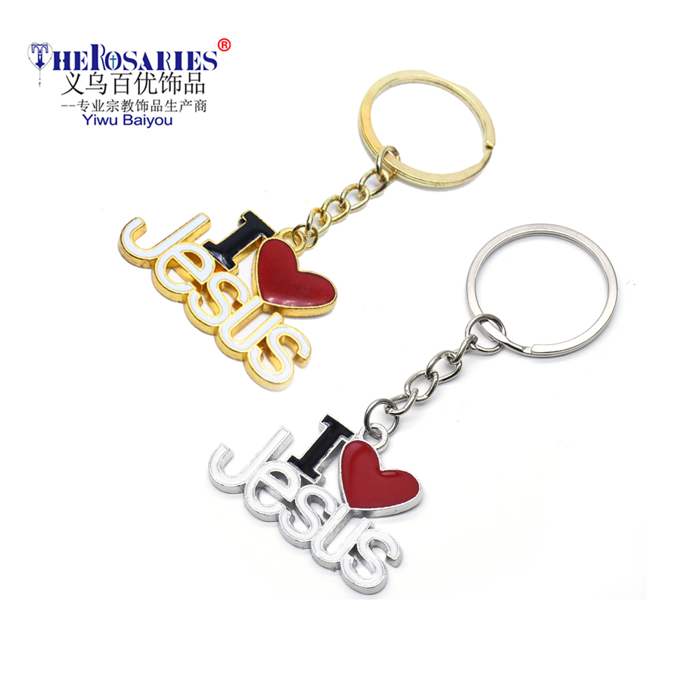 跨境外貿(mào)電商愛(ài)心十字架古銀鎖匙扣掛件圈環(huán)飾品鑰匙扣圣物禮品