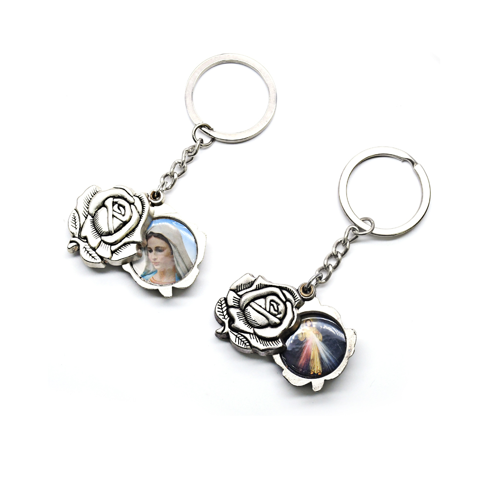外貿(mào)洗禮鑰匙扣木牌鑰匙鏈Guadalupe金銀粉婚禮飾品掛件