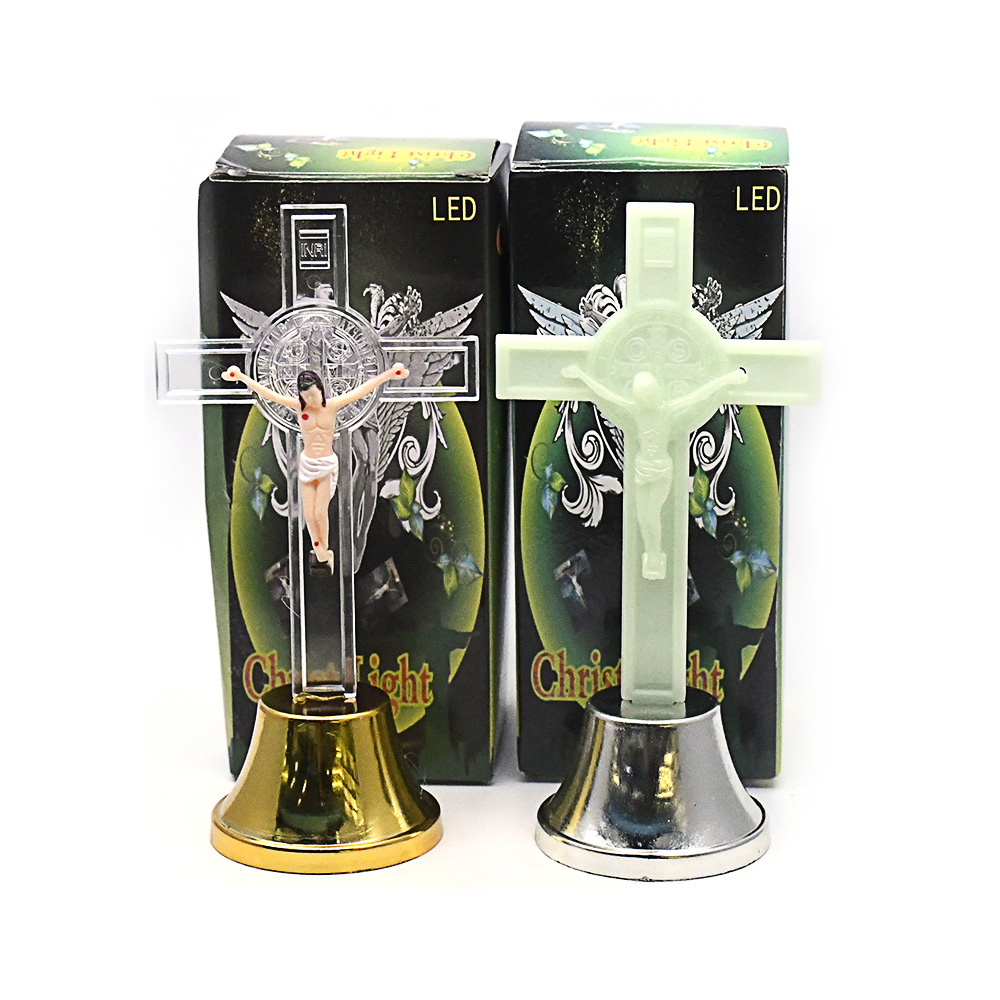 少量現(xiàn)貨,15CM高 帶燈塑料十字架擺臺(tái)擺件(紐扣電池)