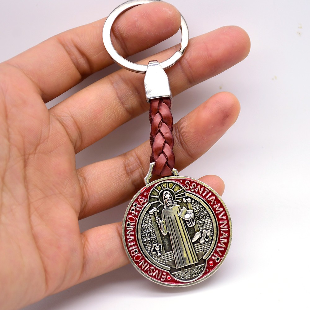 (紅色)圣本篤皮繩掛件鑰匙扣飾品旅游紀念品禮品