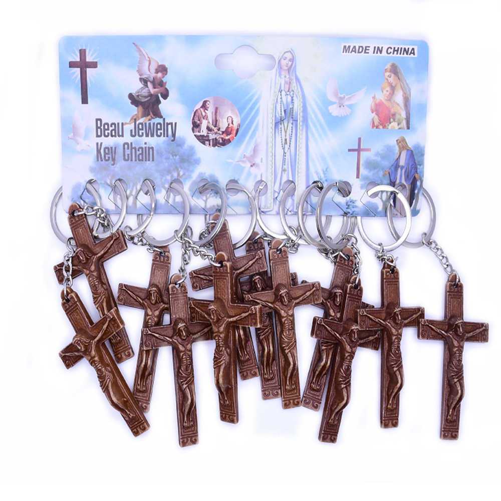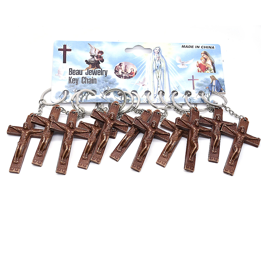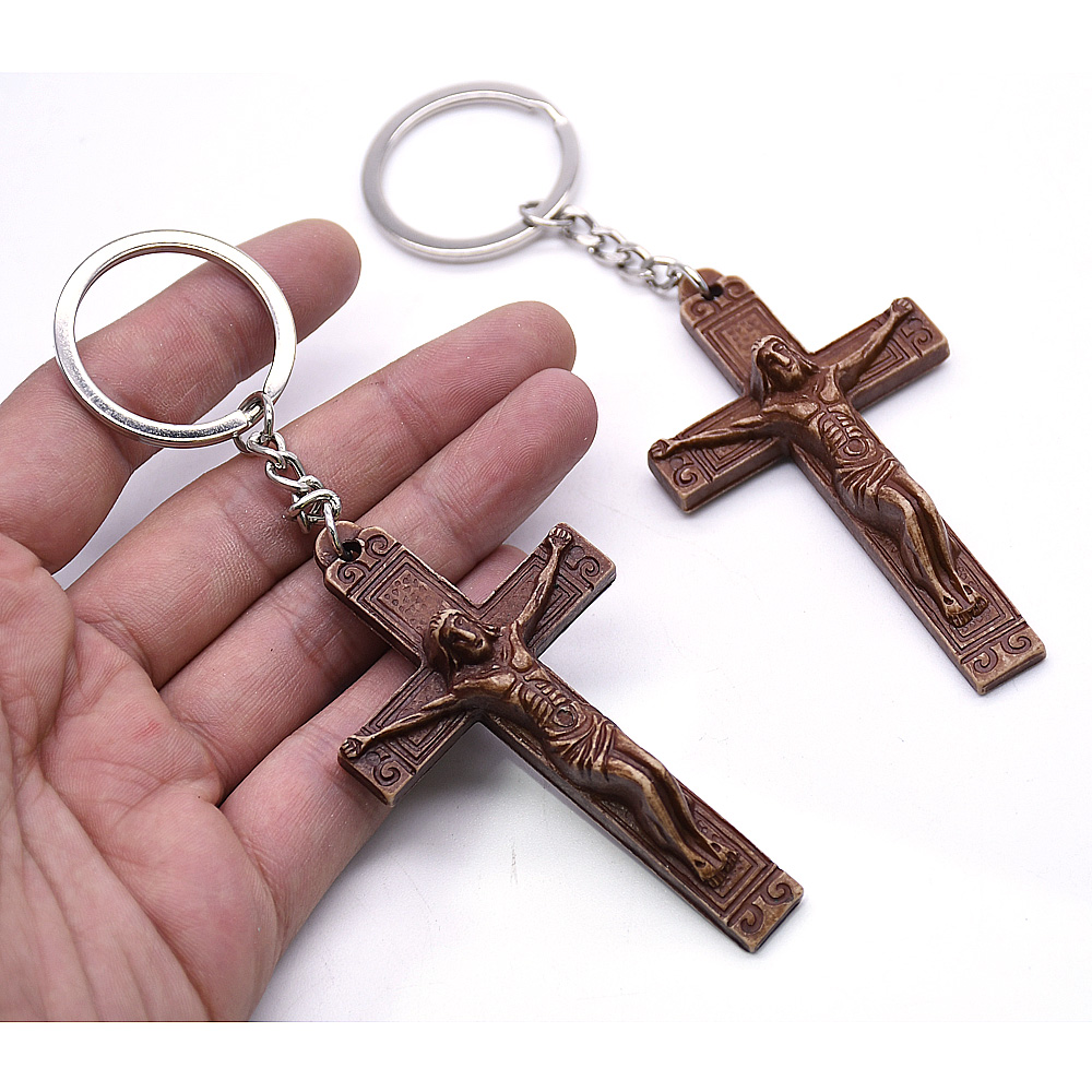 仿木塑料十字架鑰匙掛件掛環(huán)掛圈宗教飾品禮品贈(zèng)品
