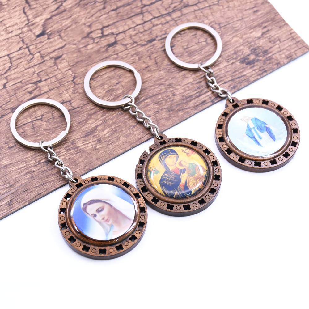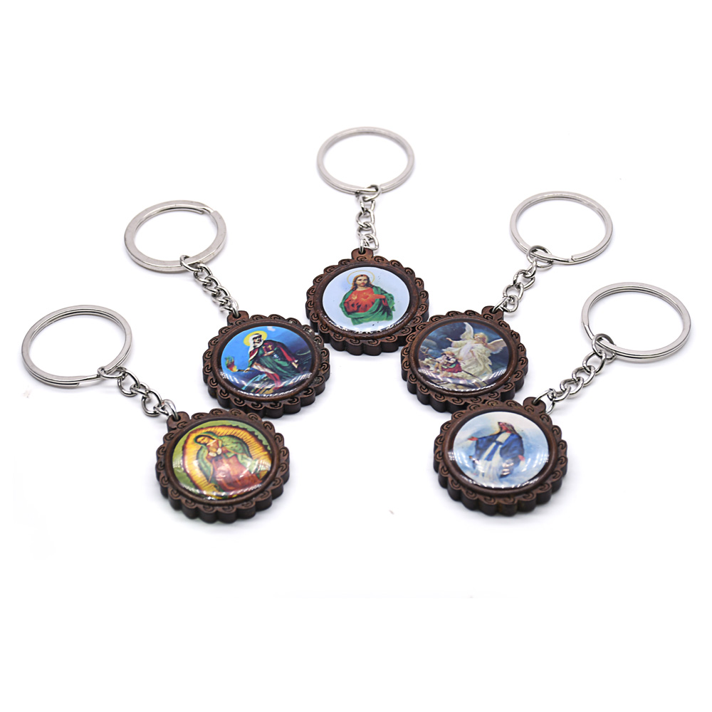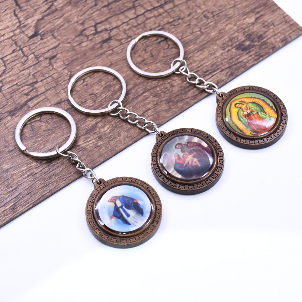跨境專供彩色滴油瓜德盧佩圣母鑰匙扣掛件圈環(huán)飾品禮品