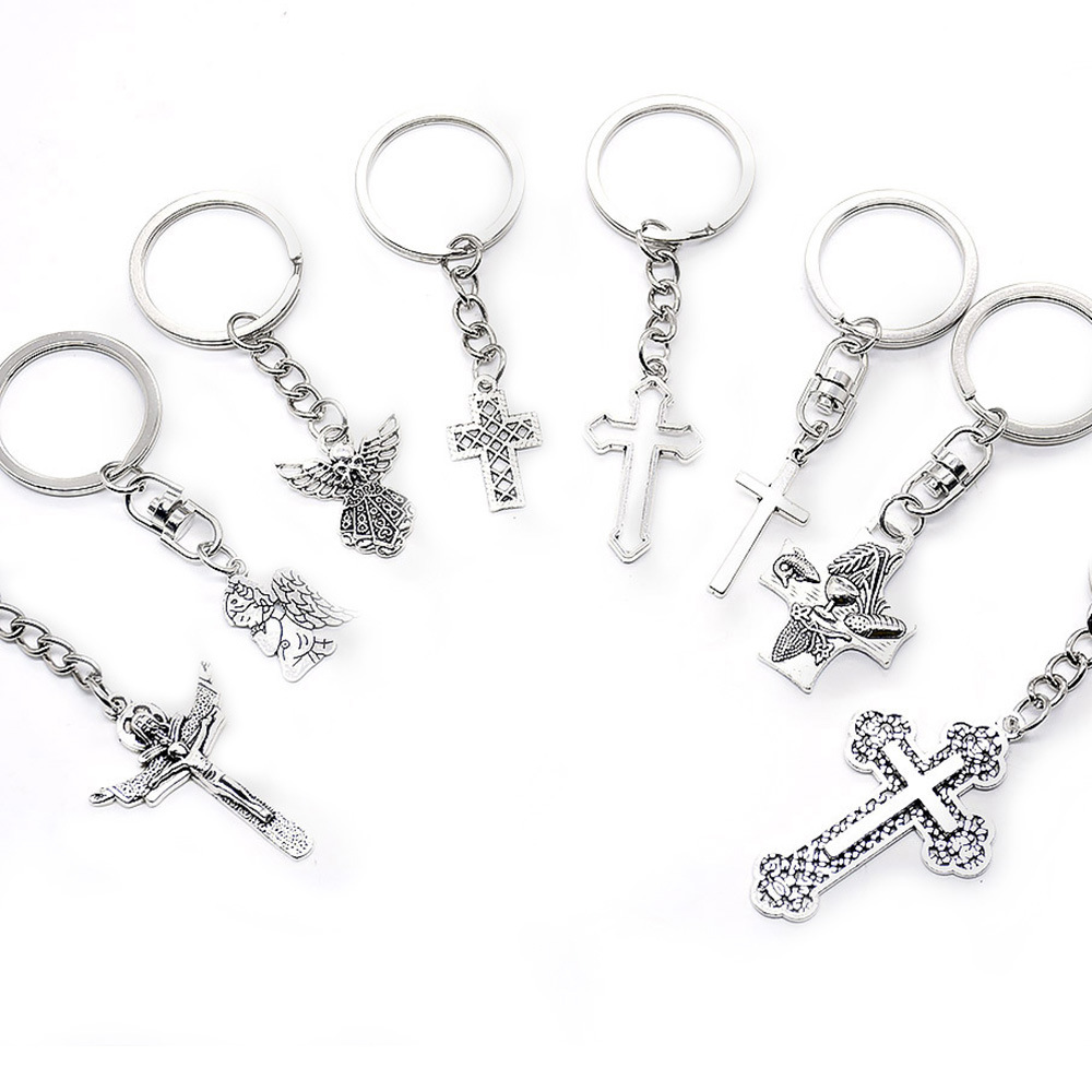 外貿(mào)電商貨源天使十字架匙扣掛件圈環(huán)飾品禮品