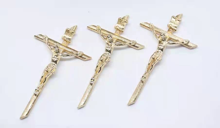 5.6*10.5cm 24K金電鍍十字架吊墜DIY飾品項鏈配件亞馬遜貨源