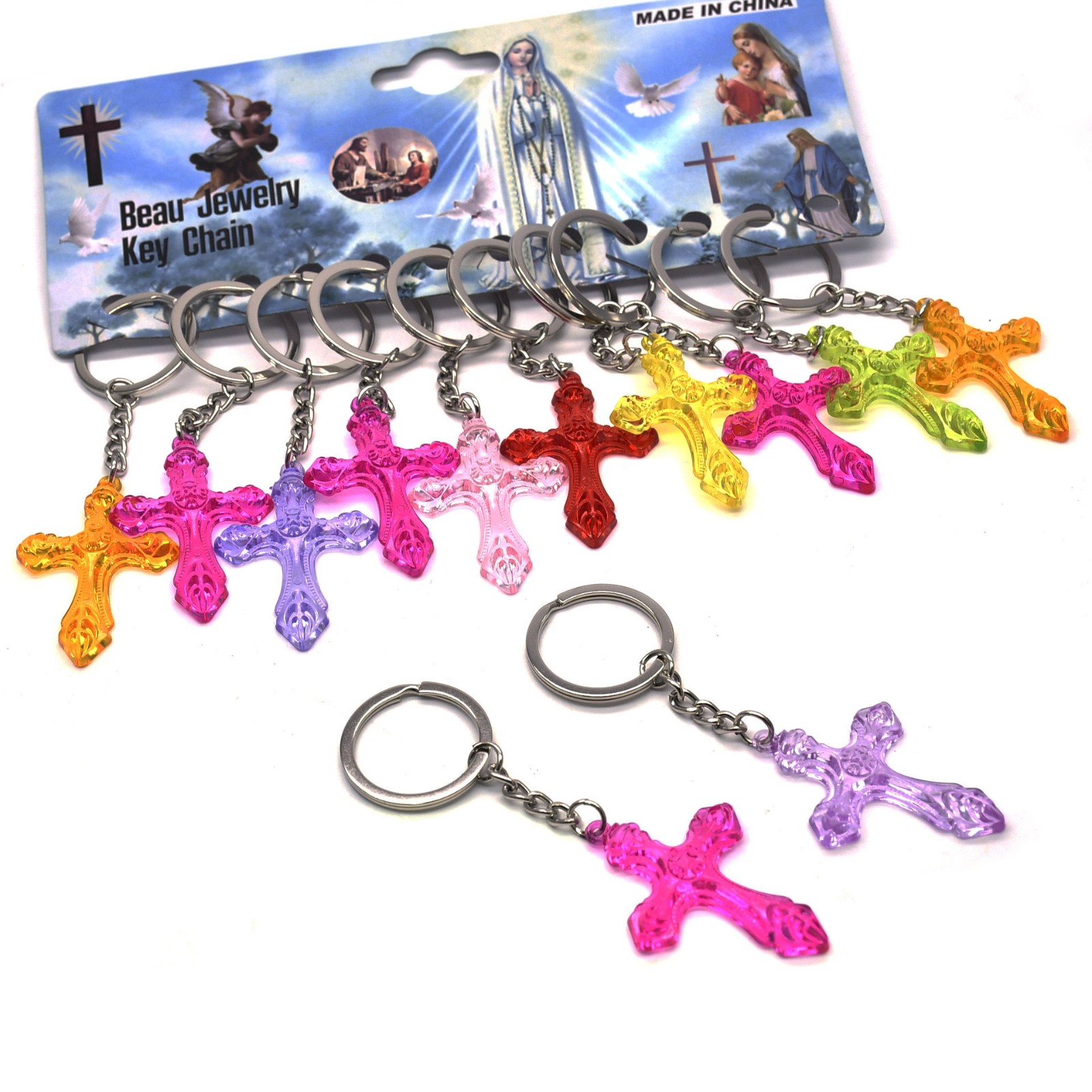 外貿(mào)電商貨源天使十字架匙扣掛件圈環(huán)飾品禮品