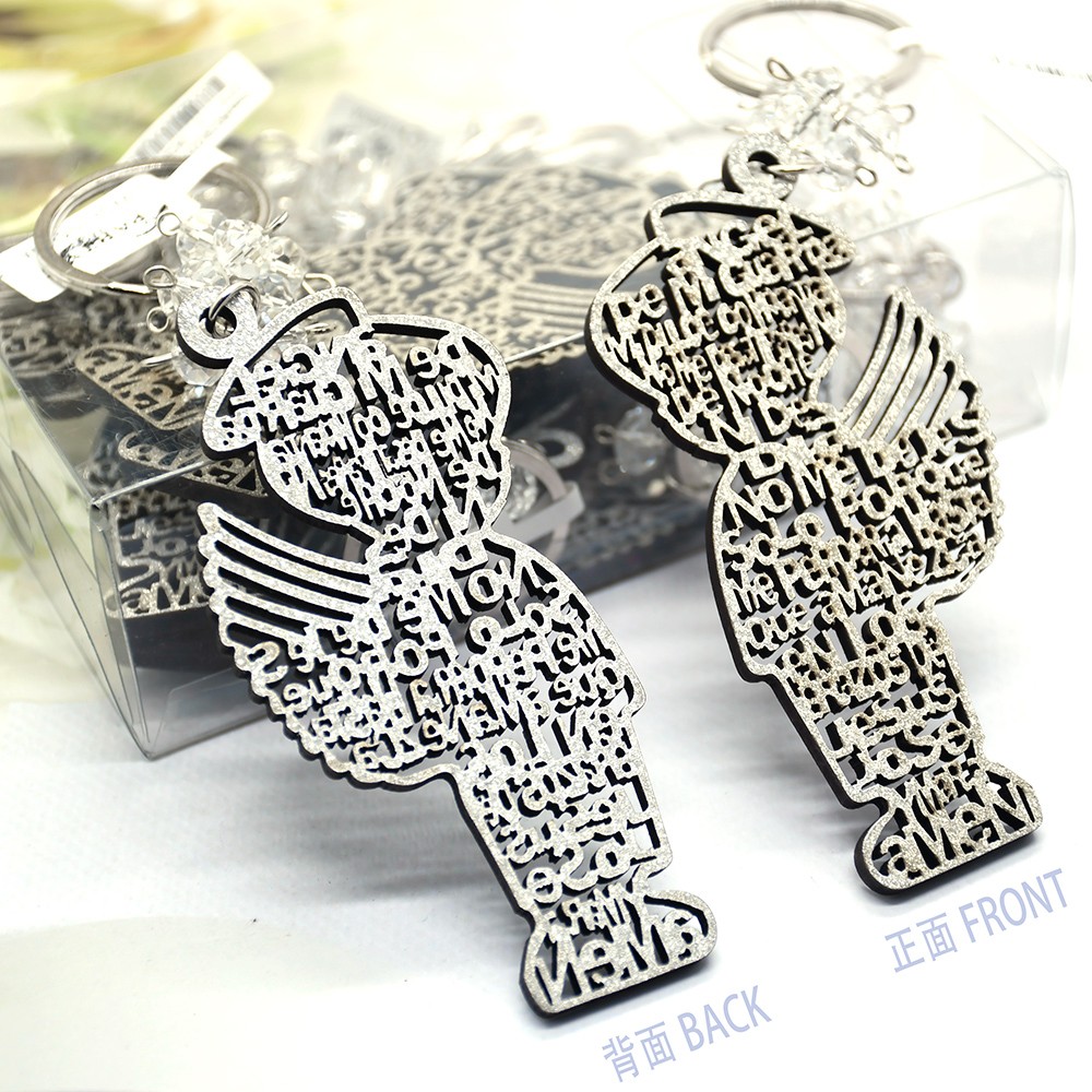 天使男女孩木制配件掛件鑰匙扣DIY婚禮飾品