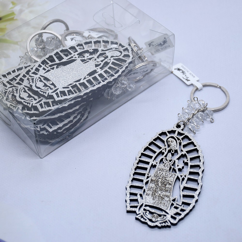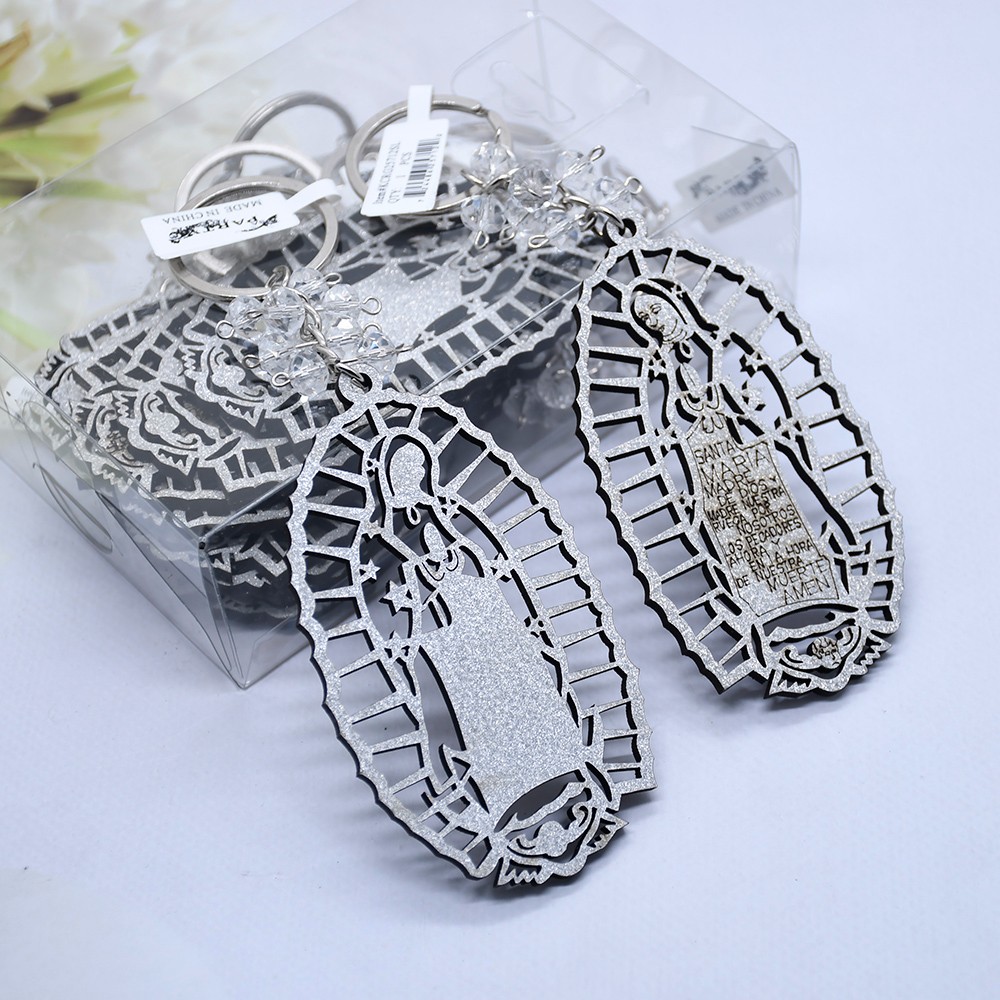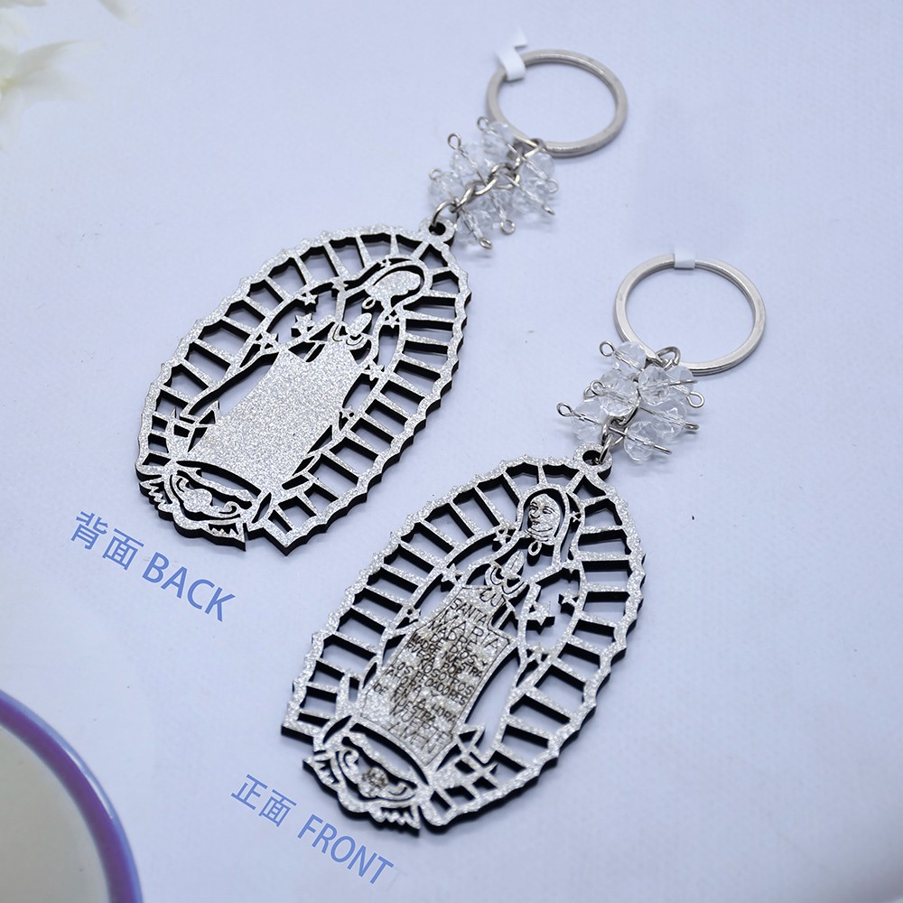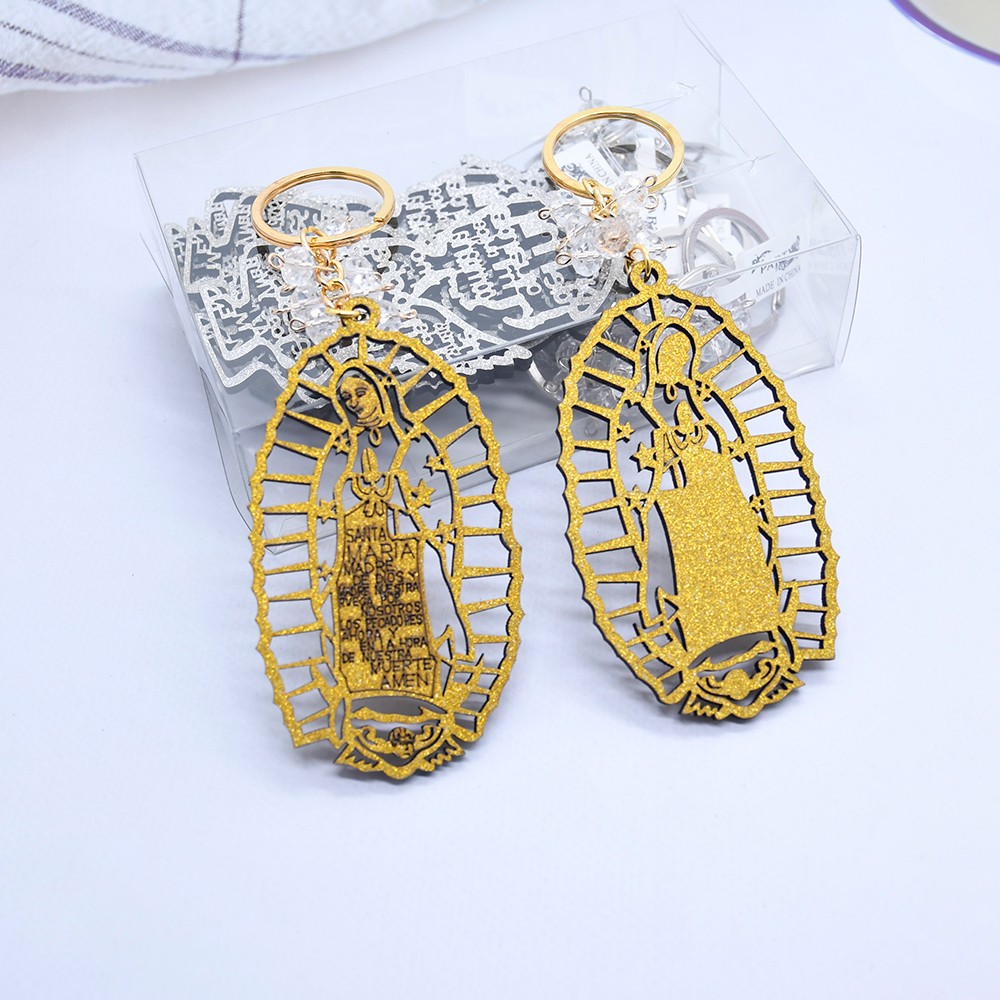 外貿(mào)洗禮鑰匙扣木牌鑰匙鏈Guadalupe金銀粉婚禮飾品掛件