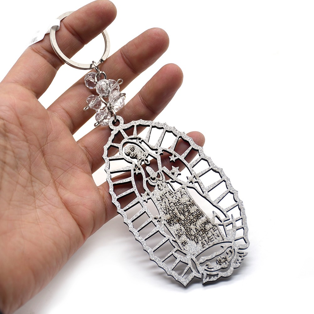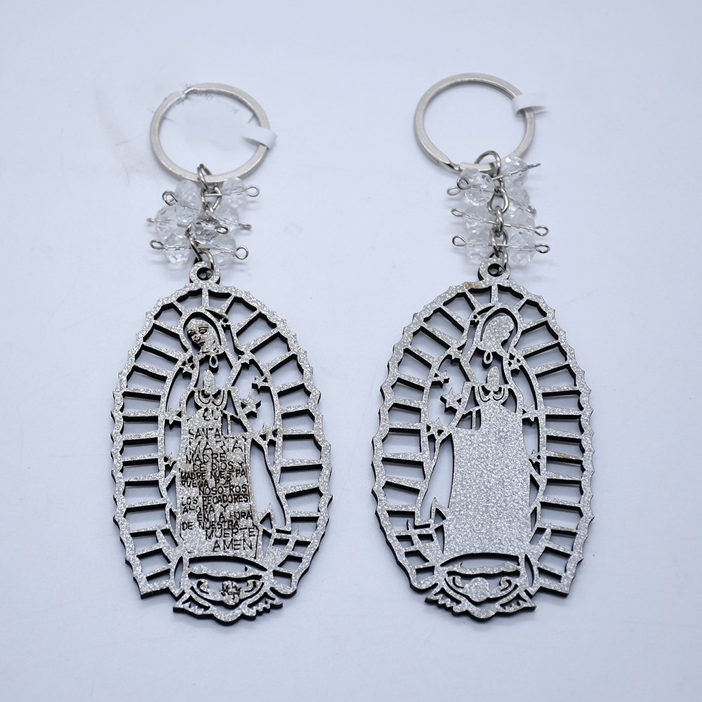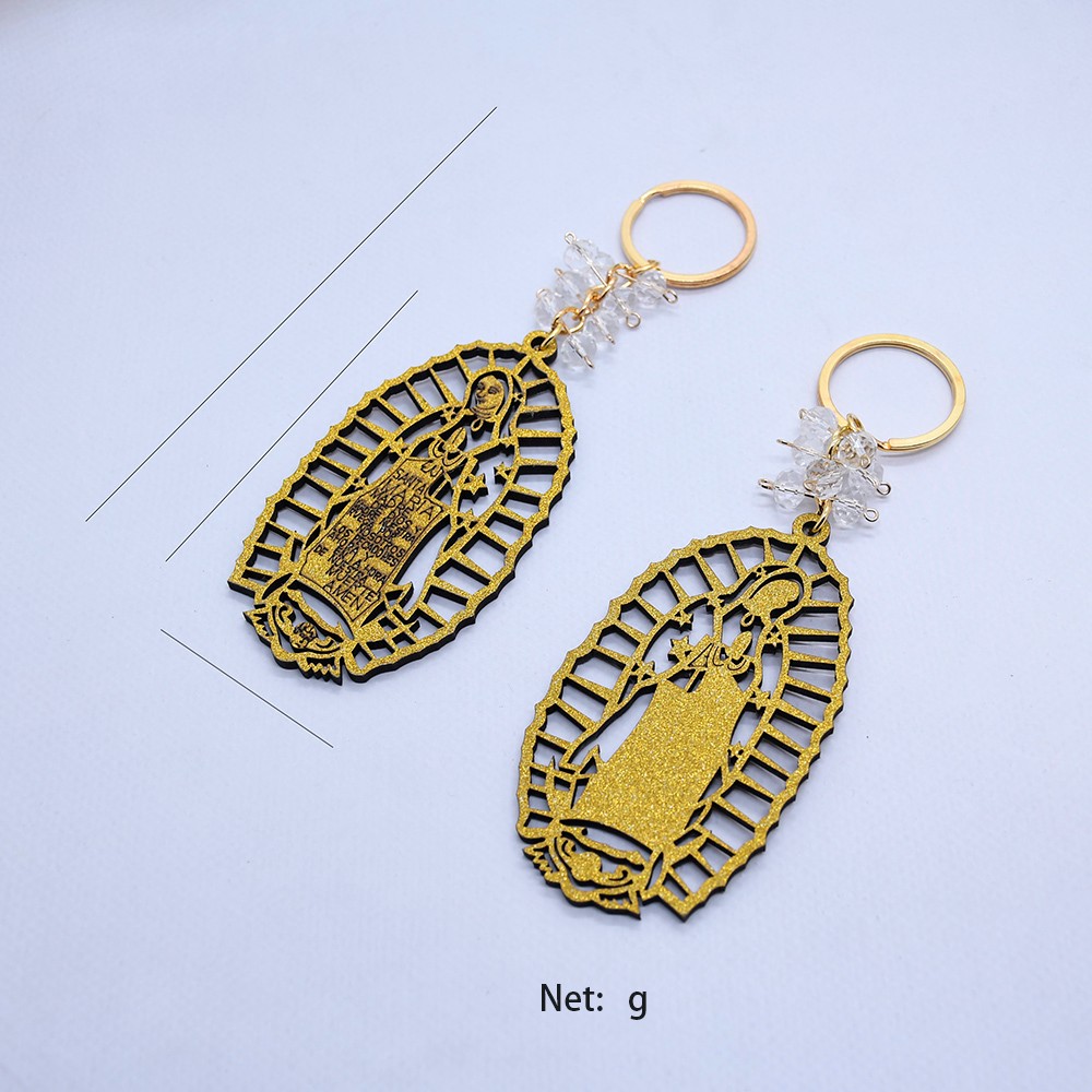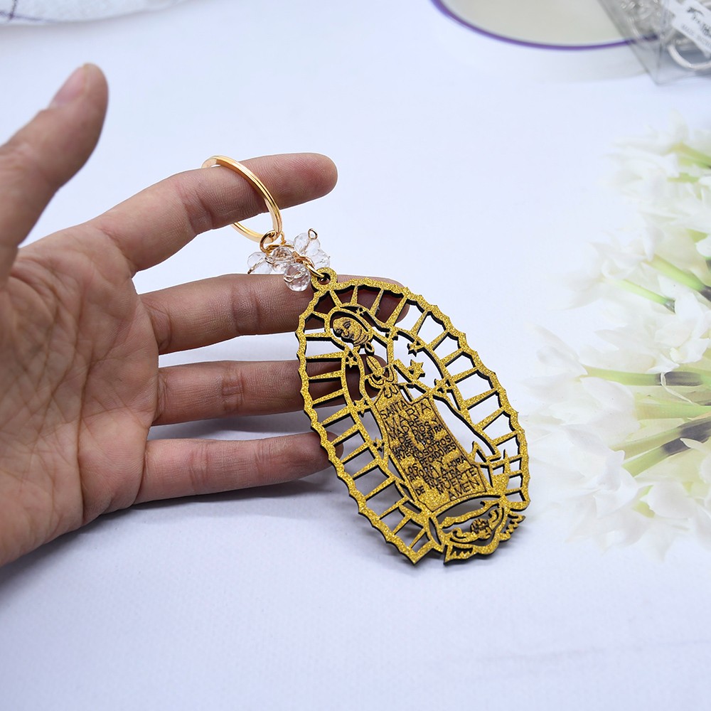 外貿(mào)洗禮鑰匙扣木牌鑰匙鏈Guadalupe金銀粉婚禮飾品掛件