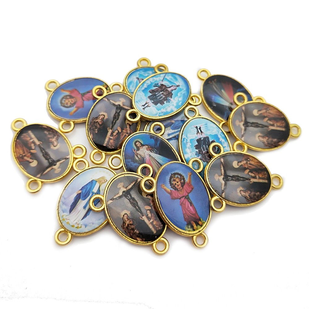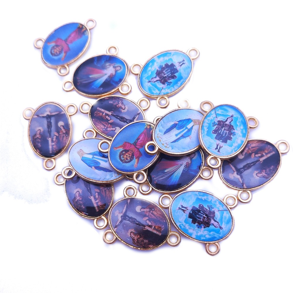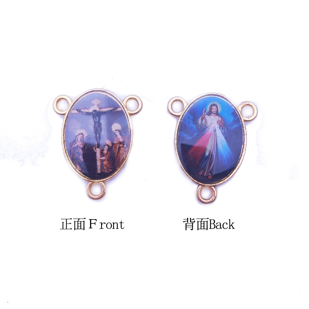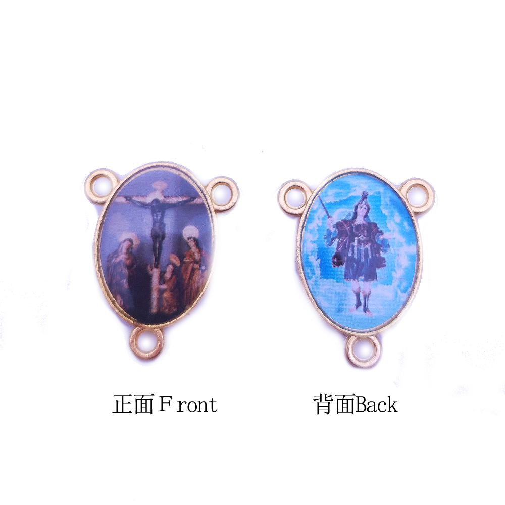 (10個每包)圣像貼圖三角配件念珠項鏈三孔DIY飾品配件 圖案隨機