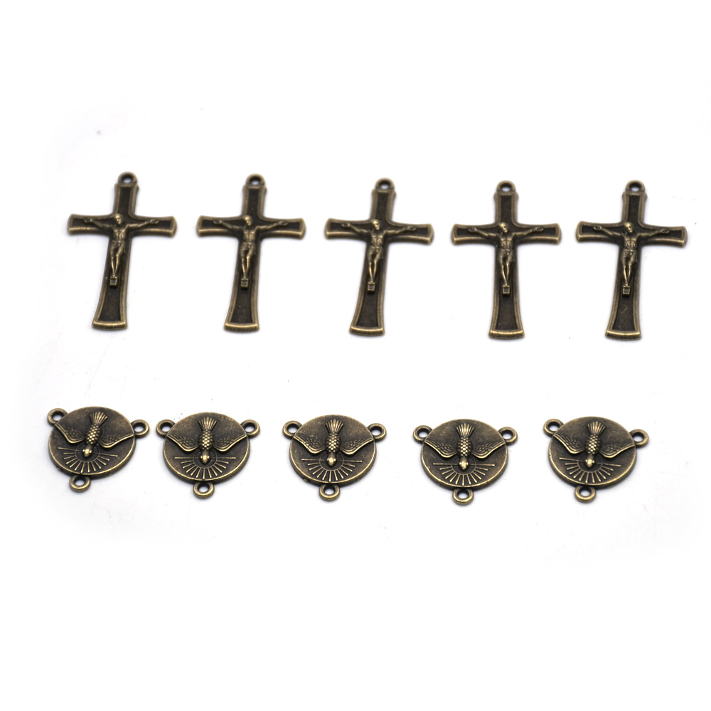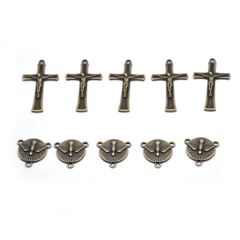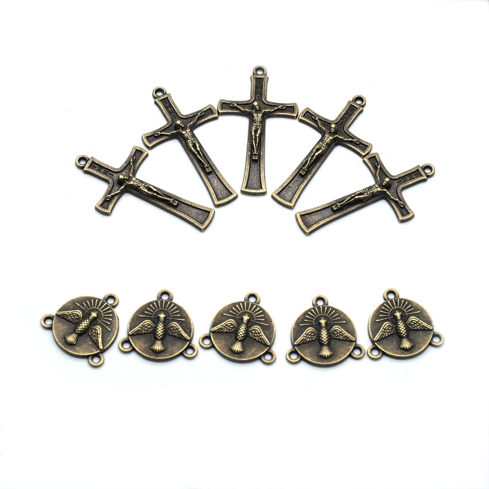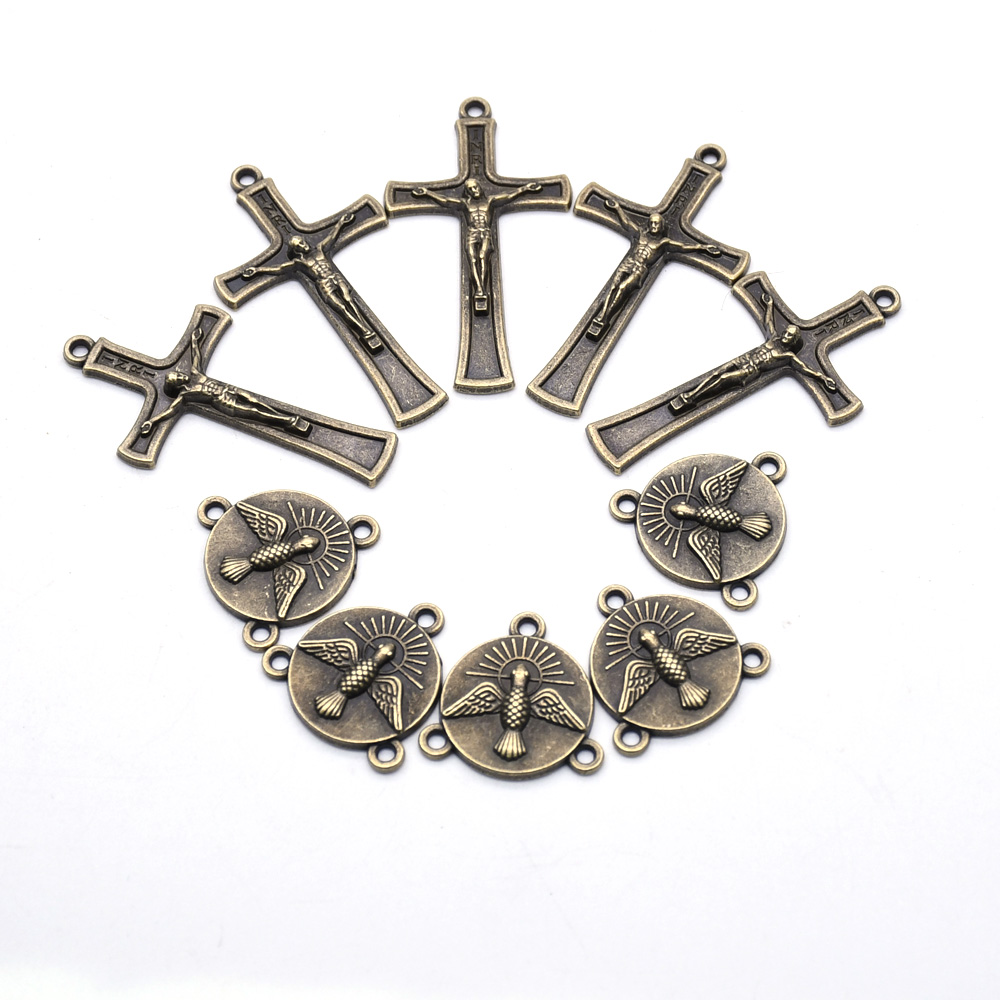 (10個/包)古青銅金屬合平鴿吊墜十字架三角牌念珠項(xiàng)鏈配件