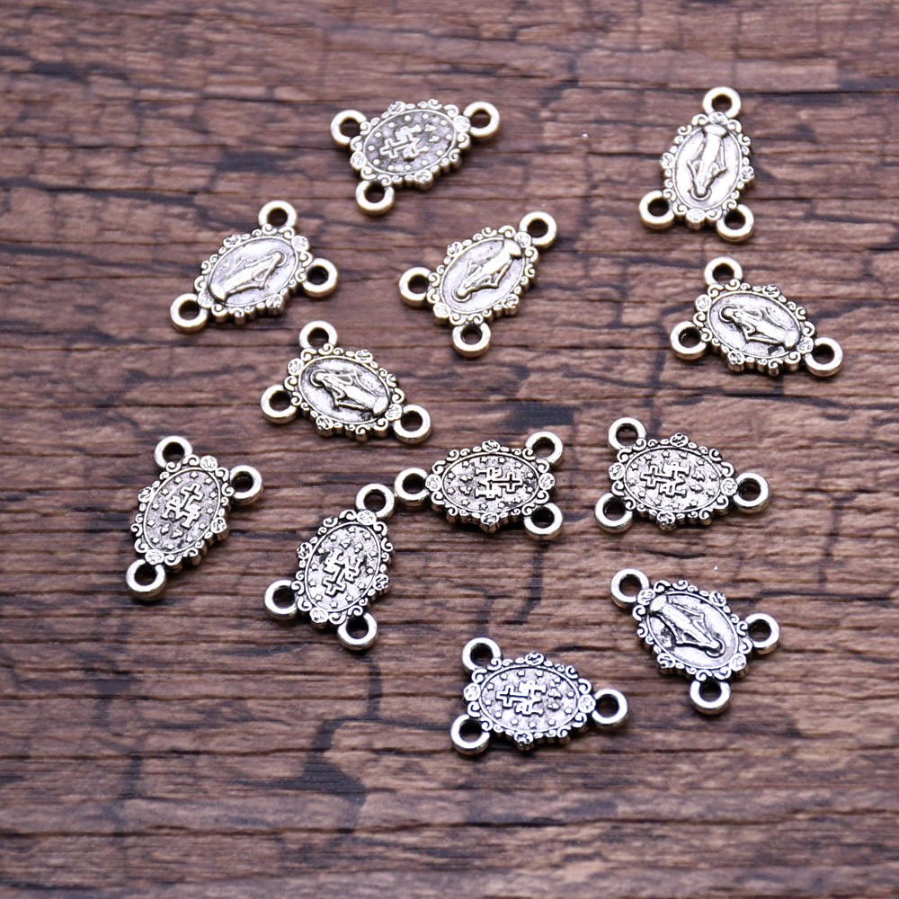 (10個(gè)每包)圣像貼圖三角配件念珠項(xiàng)鏈三孔DIY飾品配件 圖案隨機(jī)