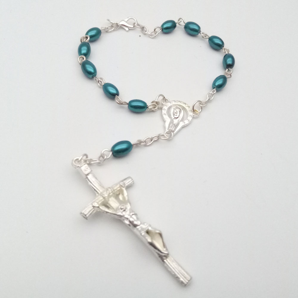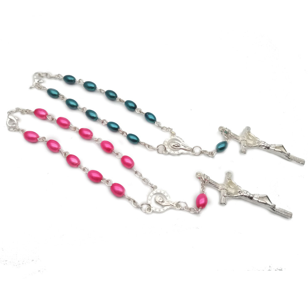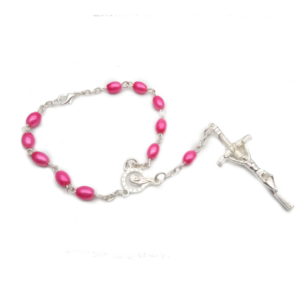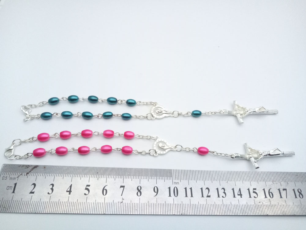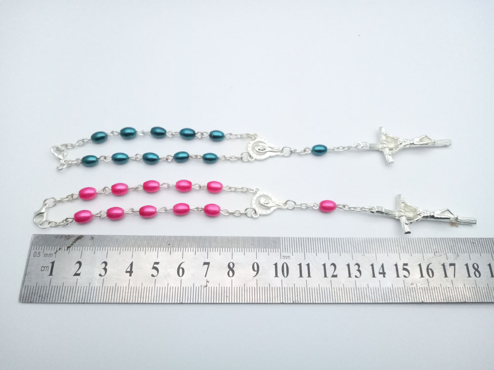 (銀色白K)車掛十字珠念珠洗禮珠十字架手鏈Rosary bracelet