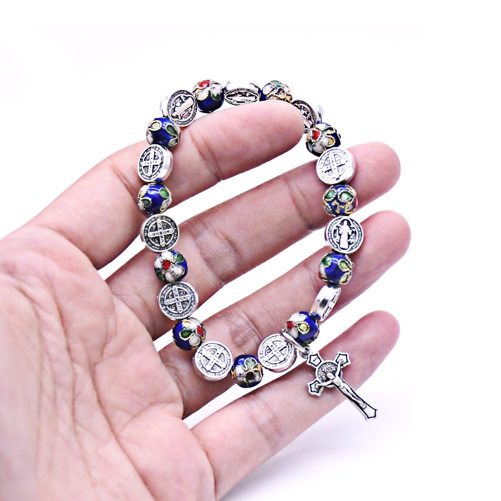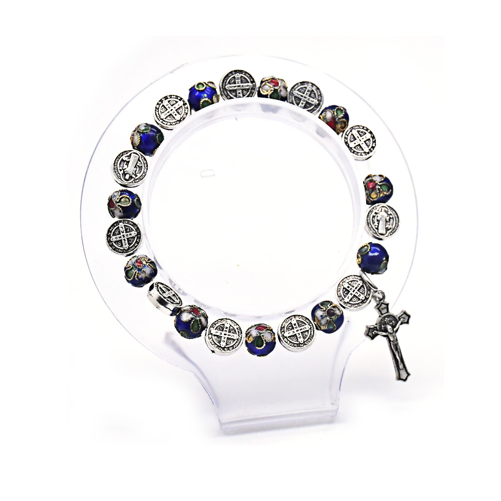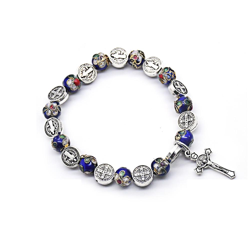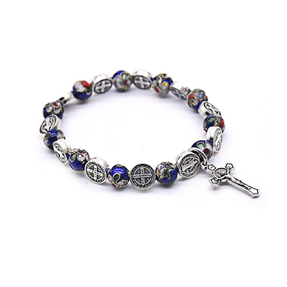 圣本篤手鏈寶藍(lán)景泰藍(lán)金屬手工珠子串繩十字架飾品手鏈
