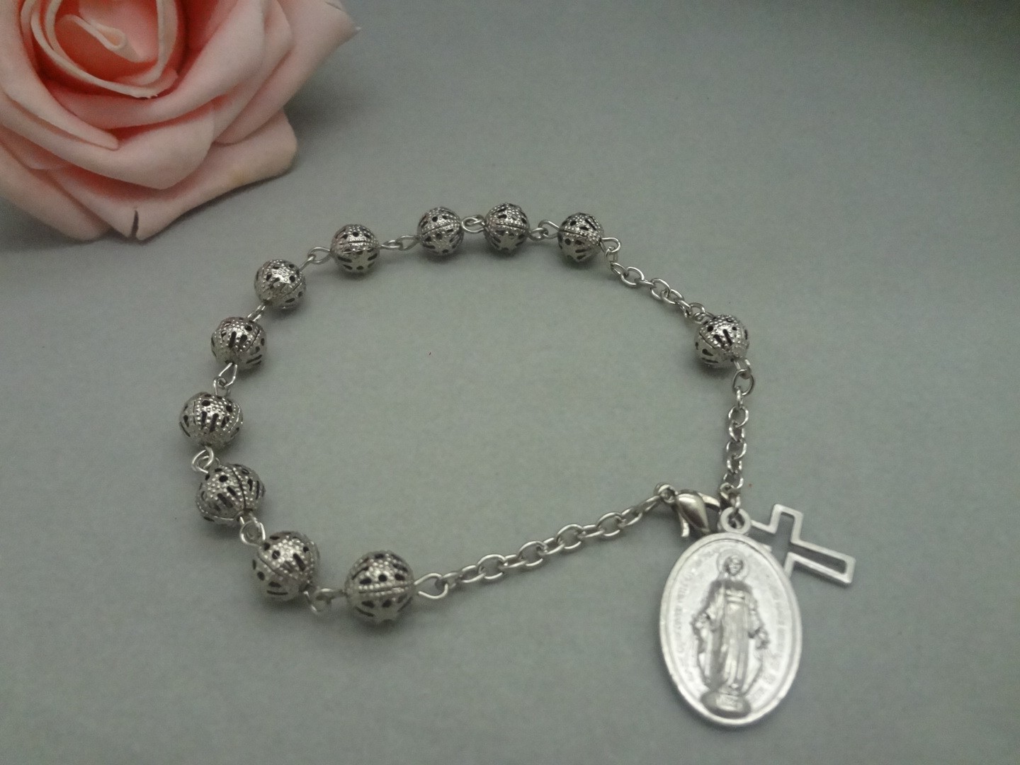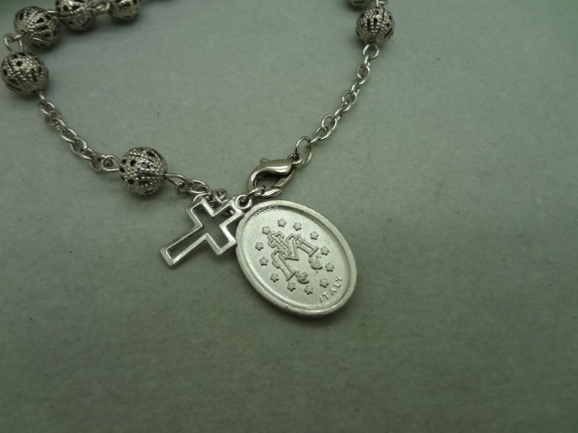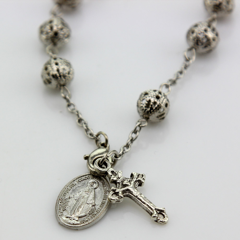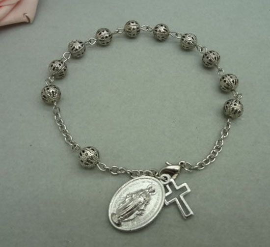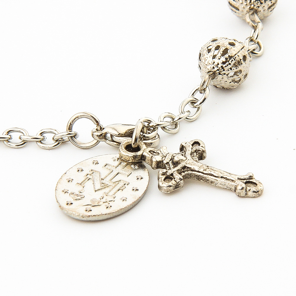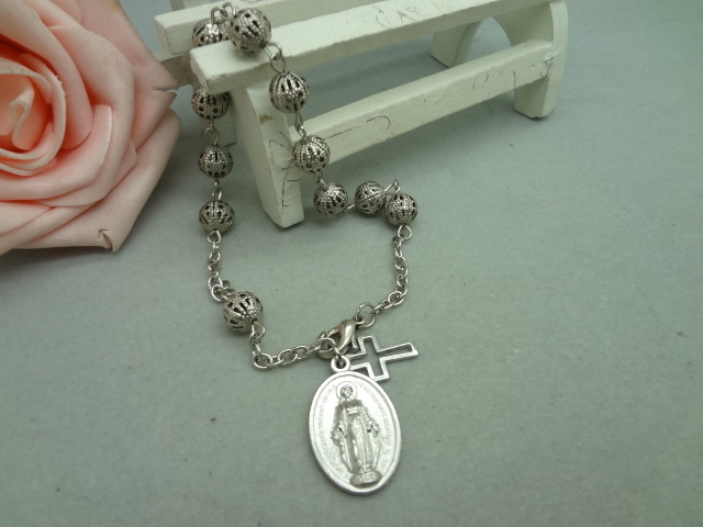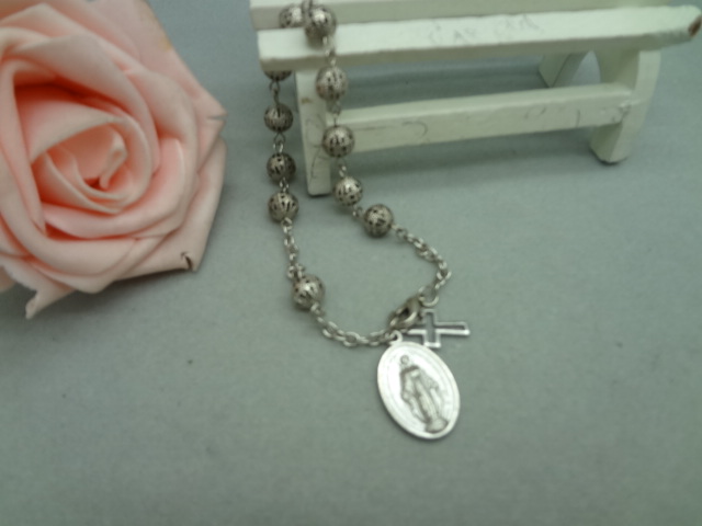 (銀色白K)車掛十字珠念珠洗禮珠十字架手鏈Rosary bracelet
